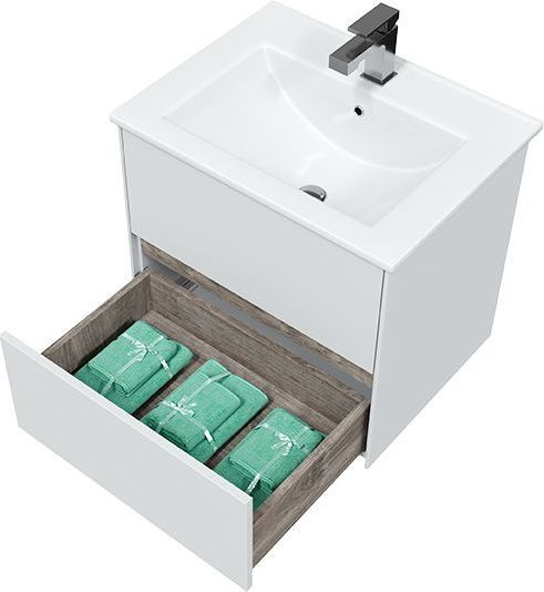 Тумба подвесная с раковиной Mirsant Ultra 60 см (раковина Next 60), белый матовый