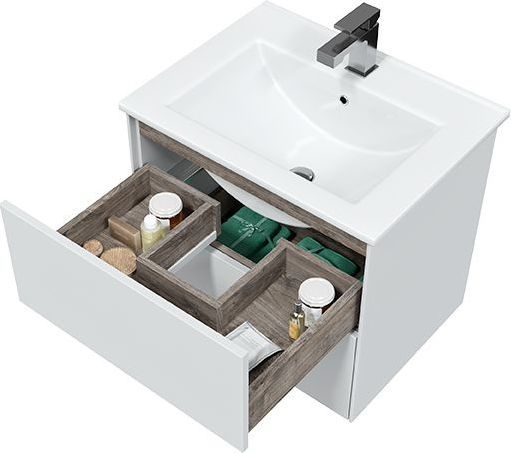 Тумба подвесная Mirsant Ultra 60 см с раковиной Next 60, цвет белый матовый.