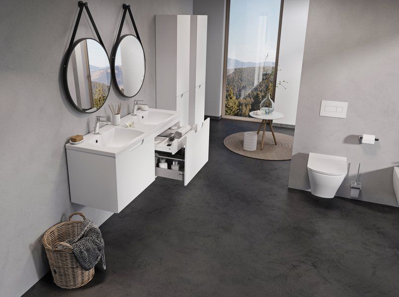 Тумба SD Classic II 1300 спроектирована под двойной умывальник Classic II 1300. Она оснащена двумя выдвижными ящиками высотой 40 см и большим пространством для хранения вещей с полным выдвижением из ниши. Кроме того, в правой части шкафа имеется встроенный низкий ящик-органайзер с отдельным выдвижным ящиком. Поставляется в собранном виде, включая монтажный комплект (винты, петли, заглушки). Тумба монтируется к стене.