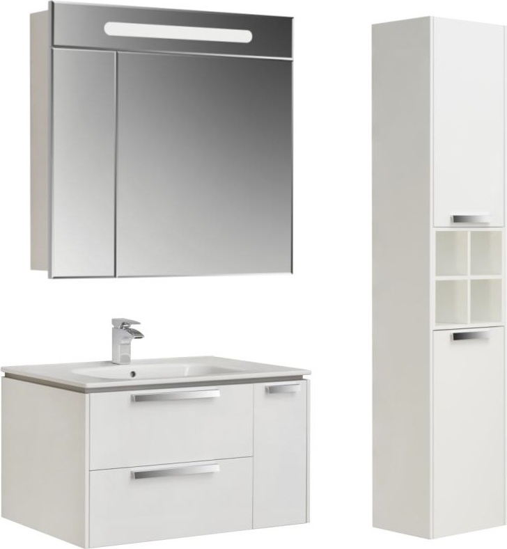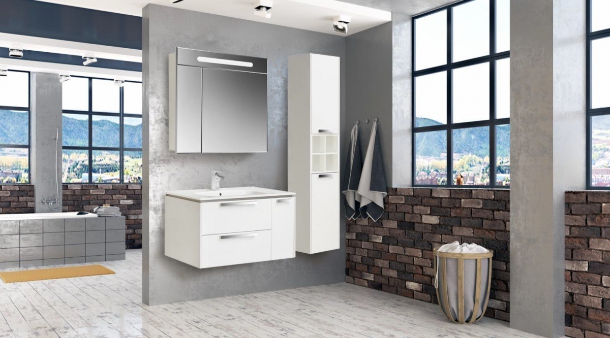 Тумба подвесная Roca Lago 80 см с раковиной UNIK VICTORIA 80 см, цвет белый глянец.