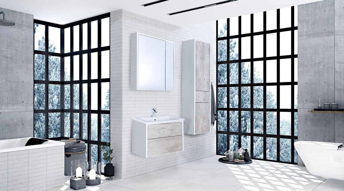 Тумба подвесная Roca Ronda 70 см с раковиной UNIK 70 см, цвет бетон/белый глянец.