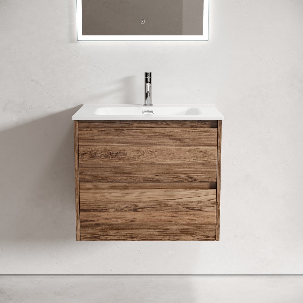 Тумба подвесная Sancos Libra 60 см LB60ECH c доводчиком и раковиной Element CN7001, цвет дуб чарльстон.