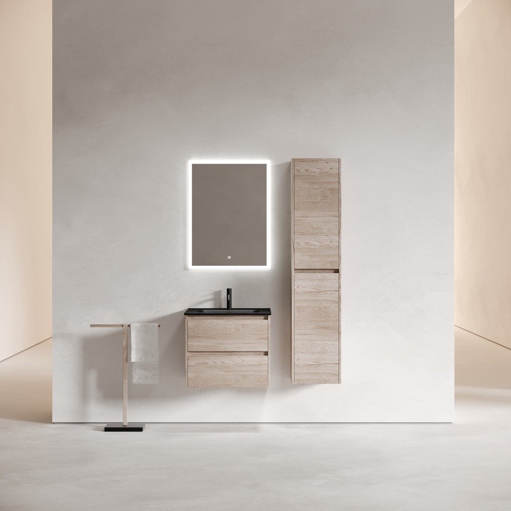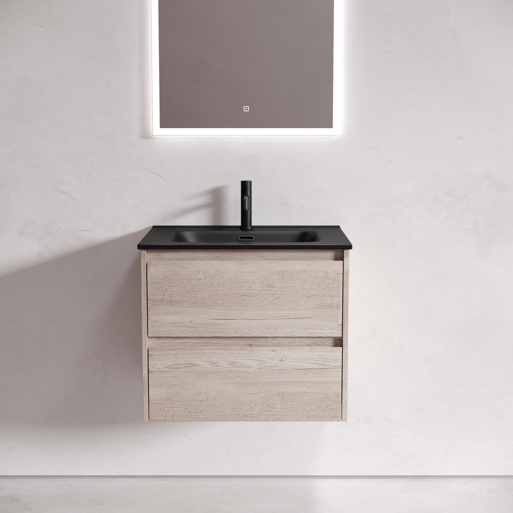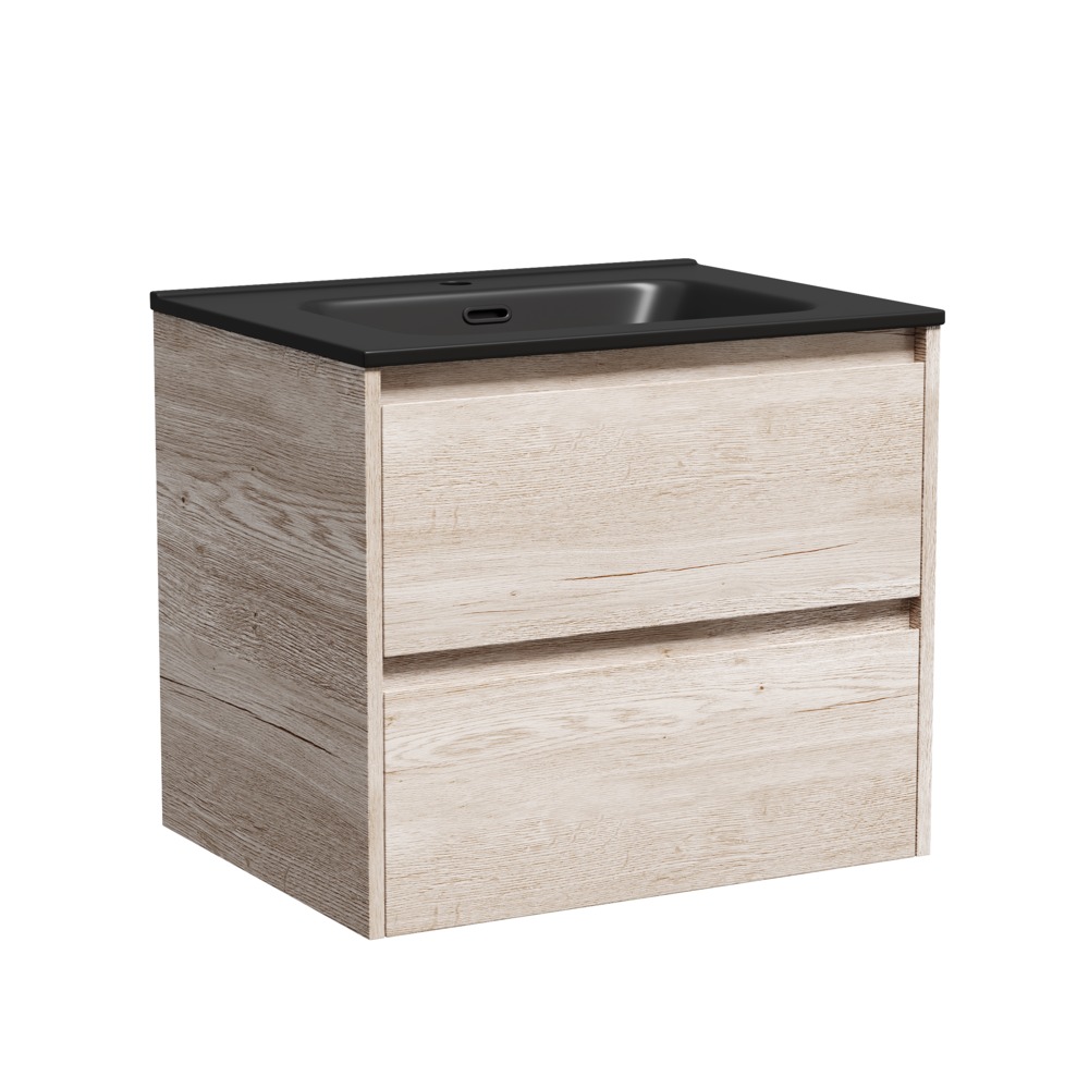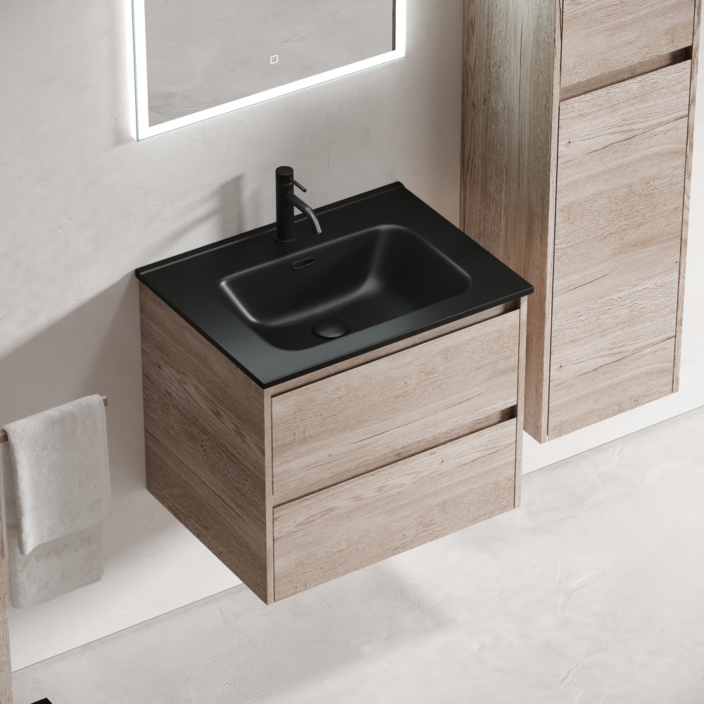 Тумба подвесная Sancos Libra 60 см LB60EG c доводчиком и раковиной Element CN7001MB, цвет дуб галифакс натуральный.