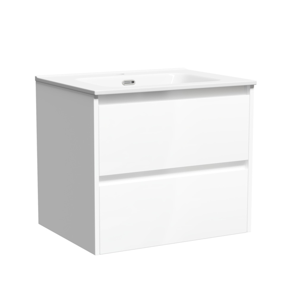 Тумба подвесная Sancos Libra 60 см LB60W c доводчиком и раковиной Element CN7001, цвет белый глянец.