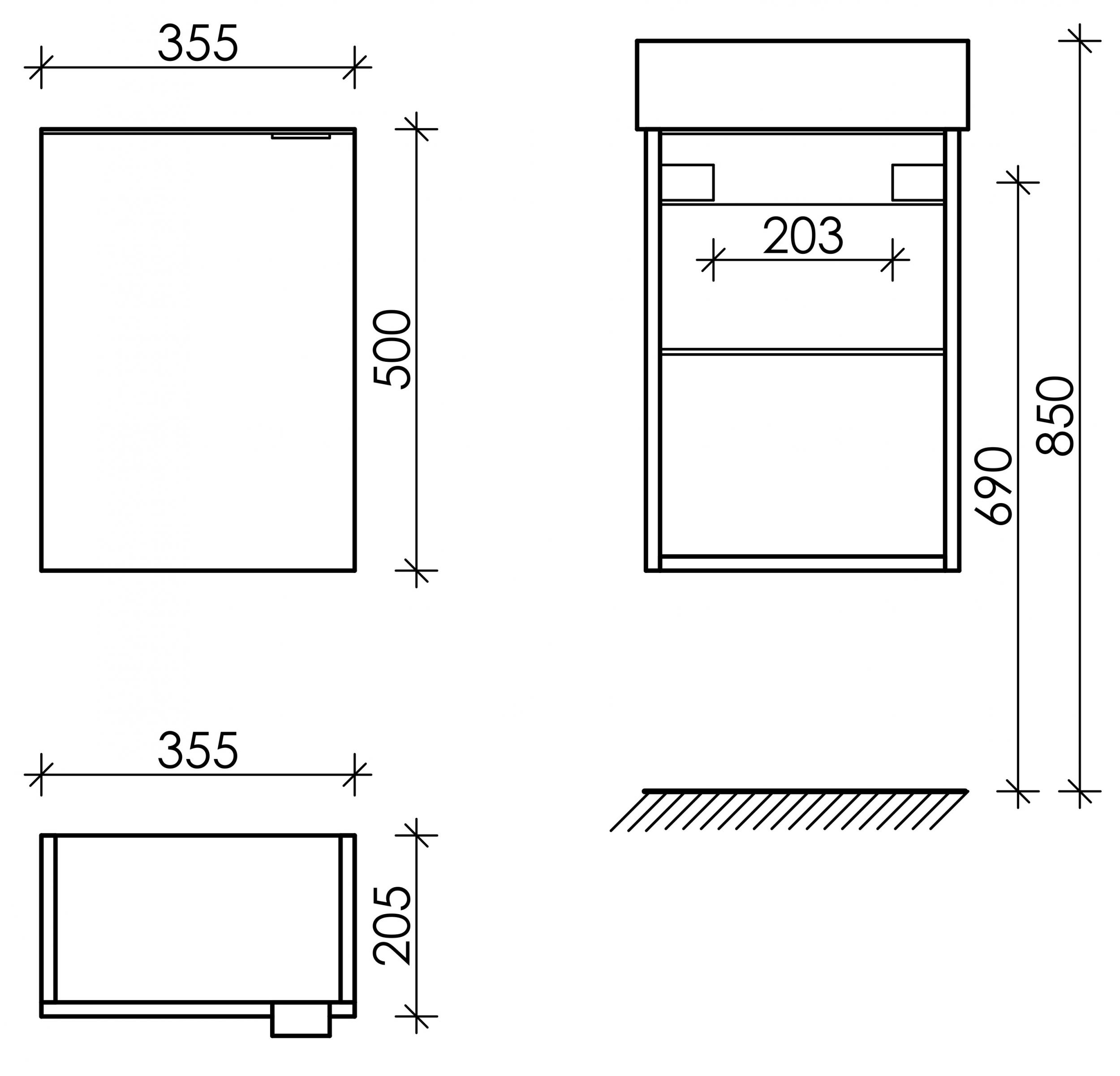 - Тумба подвесная Mini левая c распашной дверцей и внутренней полкой. Каркас и фасад тумбы выполнен из ЛДСП в цвете «дуб галифакс натуральный». Размер 355х205х500