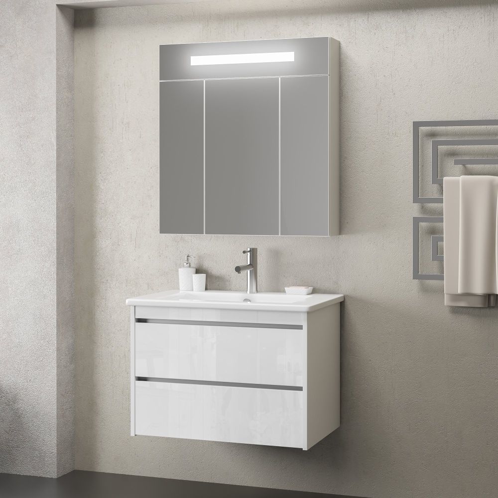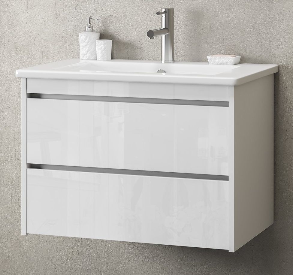 Тумба подвесная с раковиной Smile Фреш 80 см, 2 ящика, белый
