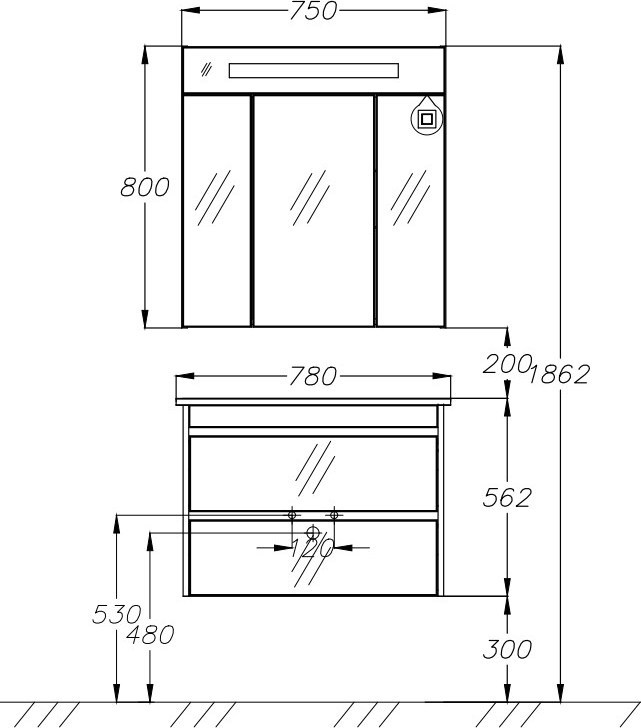 Тумба подвесная Smile Фреш 80 с раковиной Frame 80, 2 ящика, цвет белый.