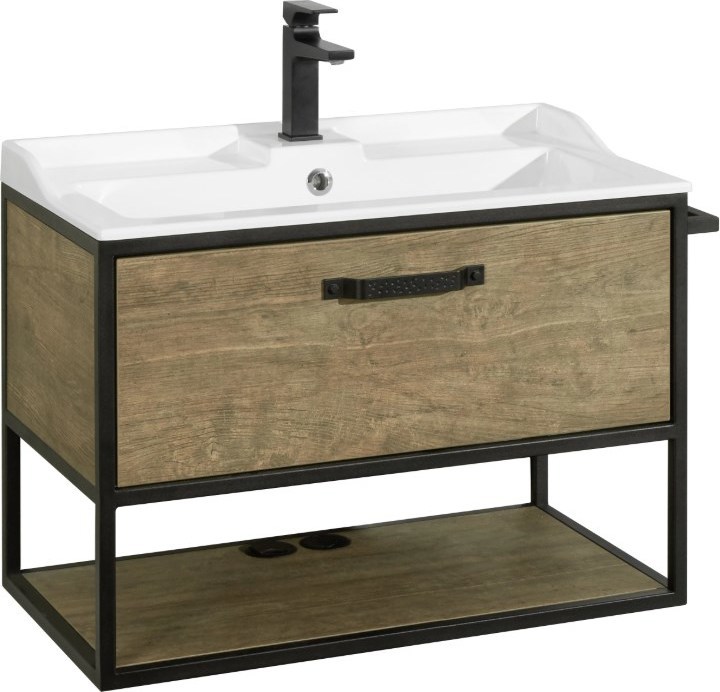Тумба подвесная Акватон Лофт Фабрик 80 см 1A242401LTDY0 с раковиной Victoria-N 80 732799C000, цвет мебели - дуб кантри, цвет фурнитуры - черный.