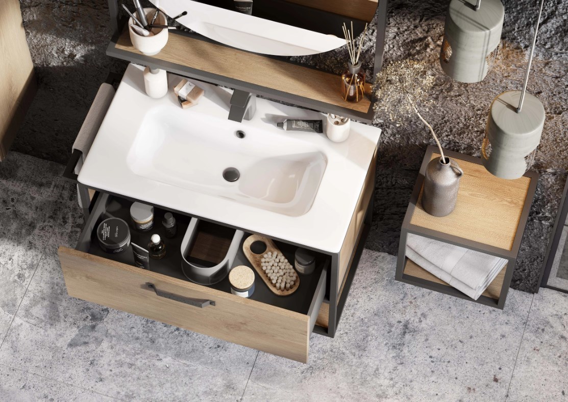 - Система хранения: вместительный ящик, снабженный направляющими плавного выдвижения, и открытая нижняя полка