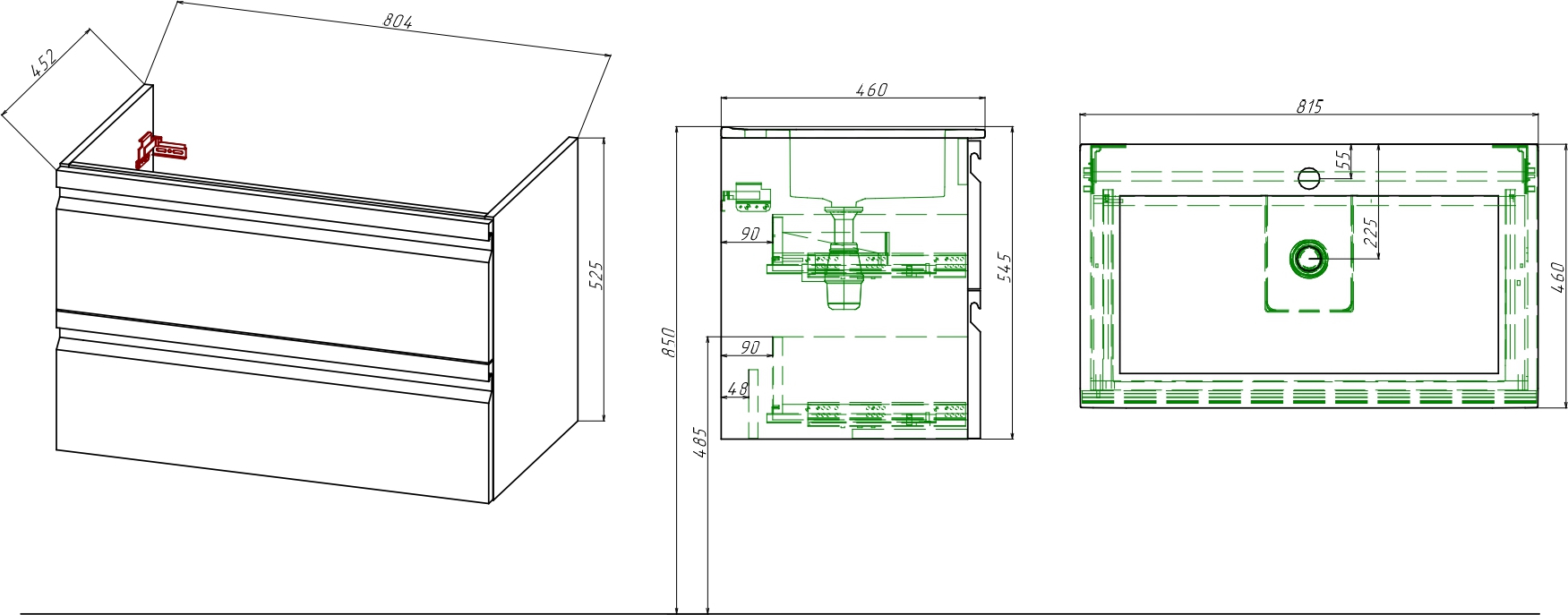 Характеристики тумба с раковиной-столешницей Aquatek (AQ77080-MG)