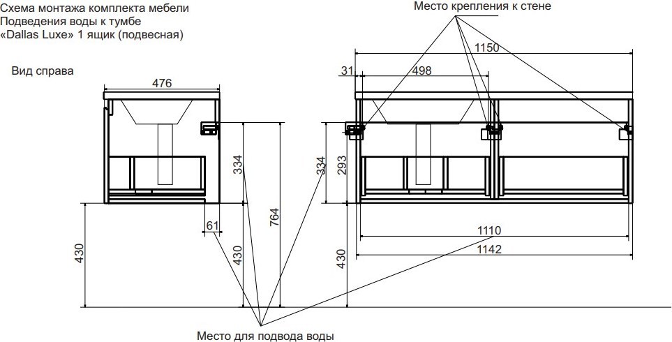- Отличительной особенностью коллекции Dallas Luxe является один большой функциональный ящик, который располагается по всей длине раковины.
