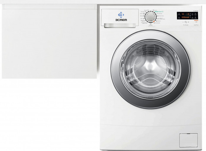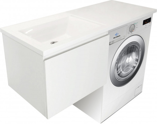 - Стиральная машина устанавливается под столешницей, за счет чего экономит место в ванной комнате.