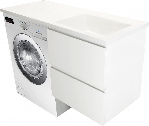 - Стиральная машина устанавливается под столешницей, за счет чего экономит место в ванной комнате.