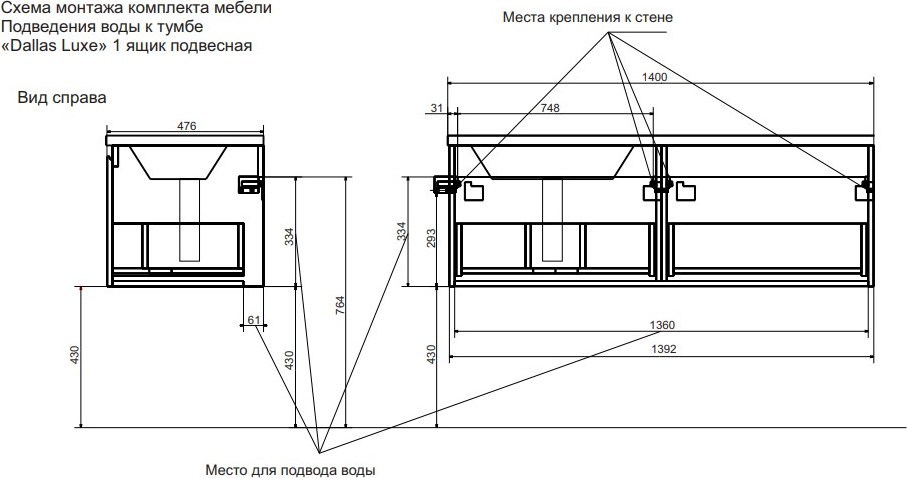 - Отличительной особенностью коллекции Dallas Luxe является один большой функциональный ящик, который располагается по всей длине раковины.