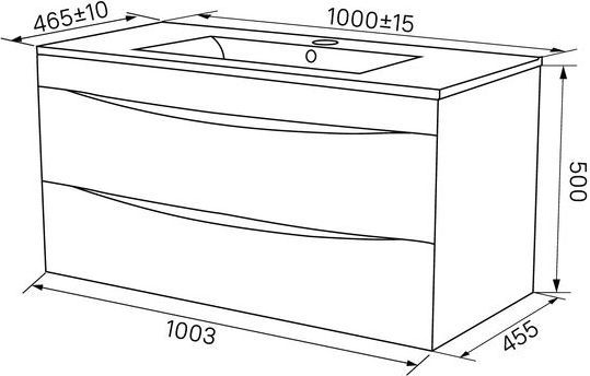 - Размеры тумбы без умывальника: 455х1003х500 мм