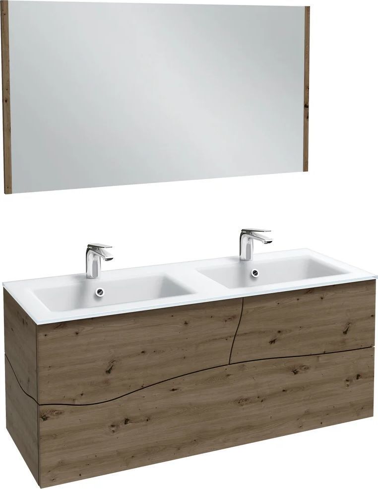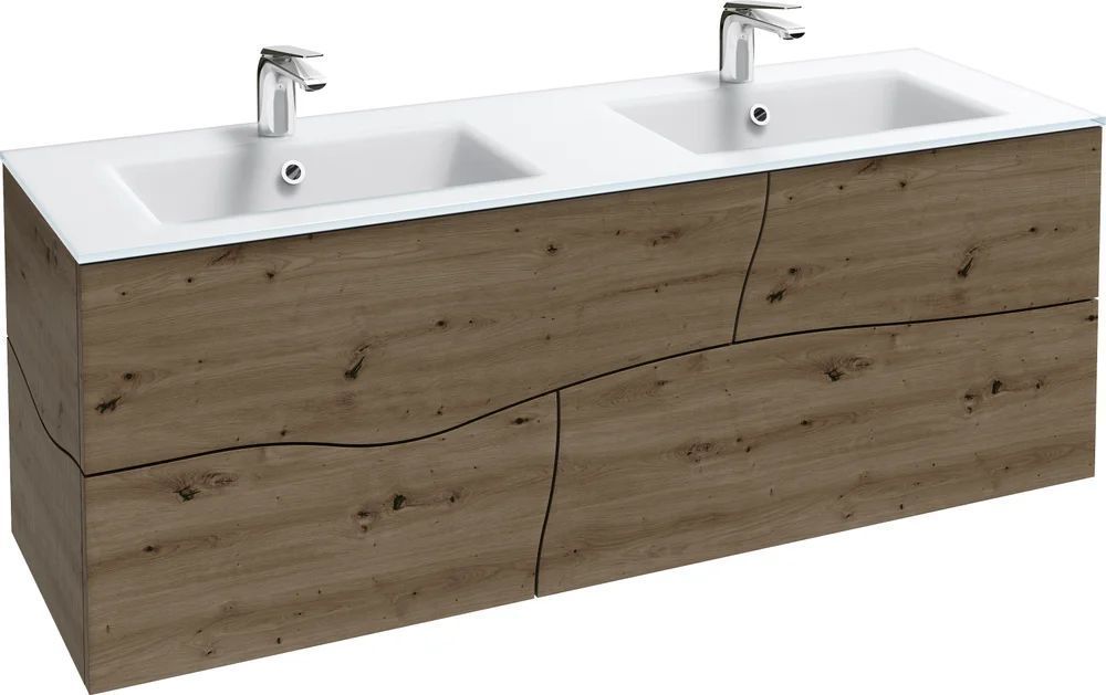 Тумба подвесная Jacob Delafon Sherwood 140 см EB1835RU-P13 с раковиной Sherwood EB1832RU-DE1, 4 выдвижных ящика с механизмом «плавное закрывание», цвет состаренный дуб.