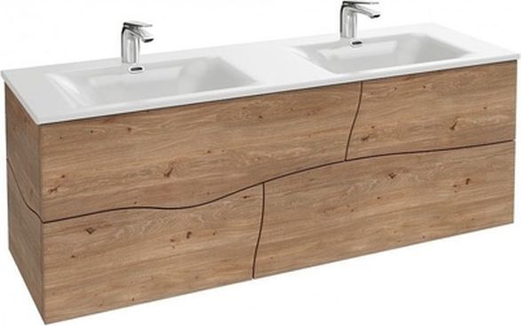 Тумба подвесная Jacob Delafon Sherwood 140 см EB1835RU-P6 с раковиной Sherwood EB1832RU-DE1, 4 выдвижных ящика с механизмом «плавное закрывание», цвет натуральный дуб.