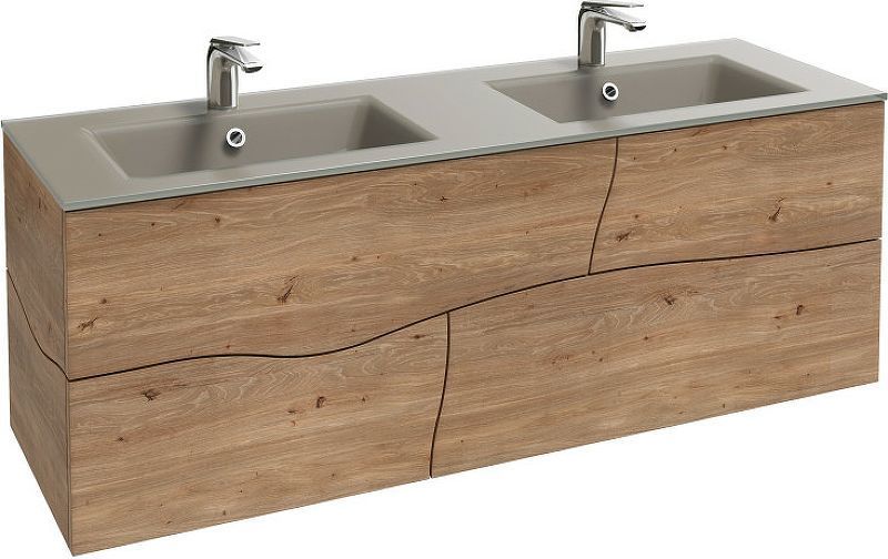 Тумба подвесная Jacob Delafon Sherwood 140 см EB1835RU-P6 с раковиной Sherwood EB1832RU-DE5, 4 выдвижных ящика с механизмом «плавное закрывание», цвет натуральный дуб.