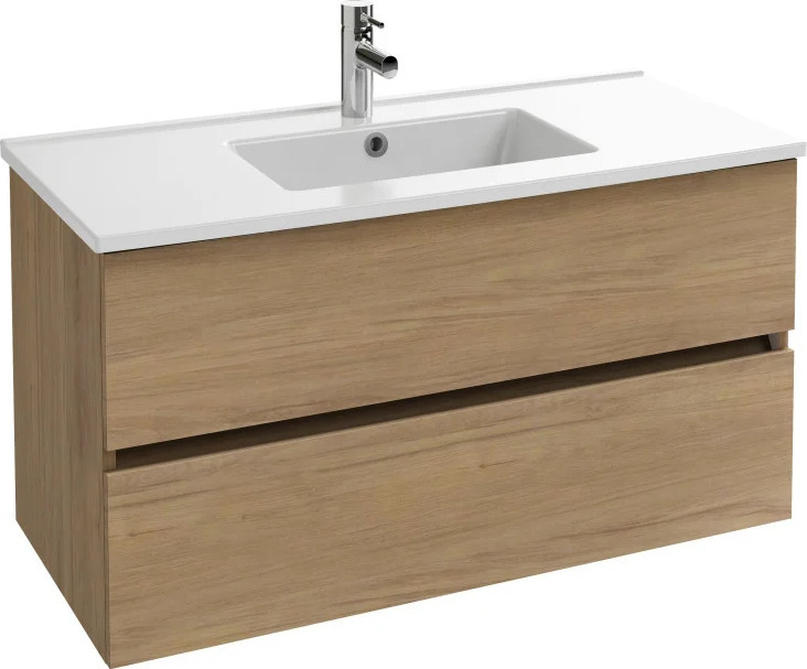 Тумба подвесная Jacob Delafon Tolbiac 100 см EB2383-E75 с раковиной Ola EXUA112-00, 2 выдвижных ящика с механизмом «плавное закрывание», цвет дуб давос натуральный.