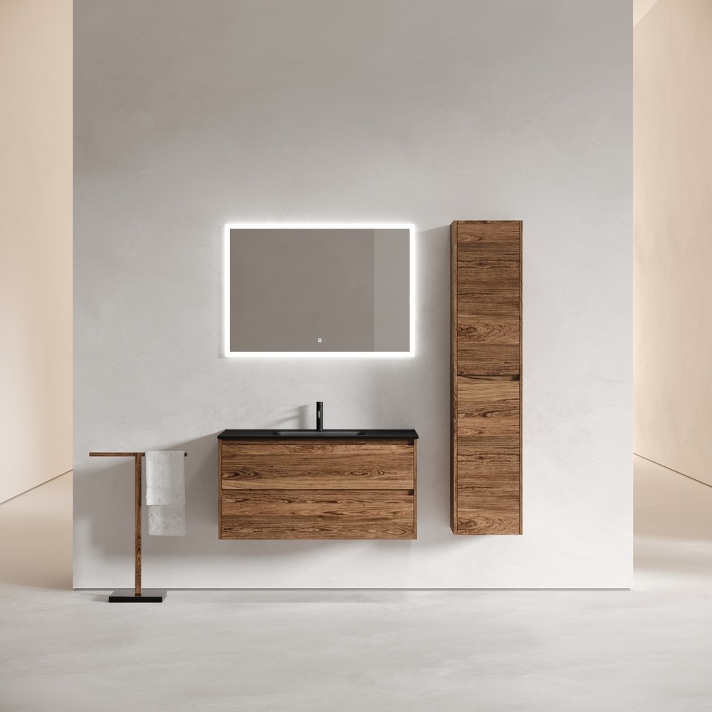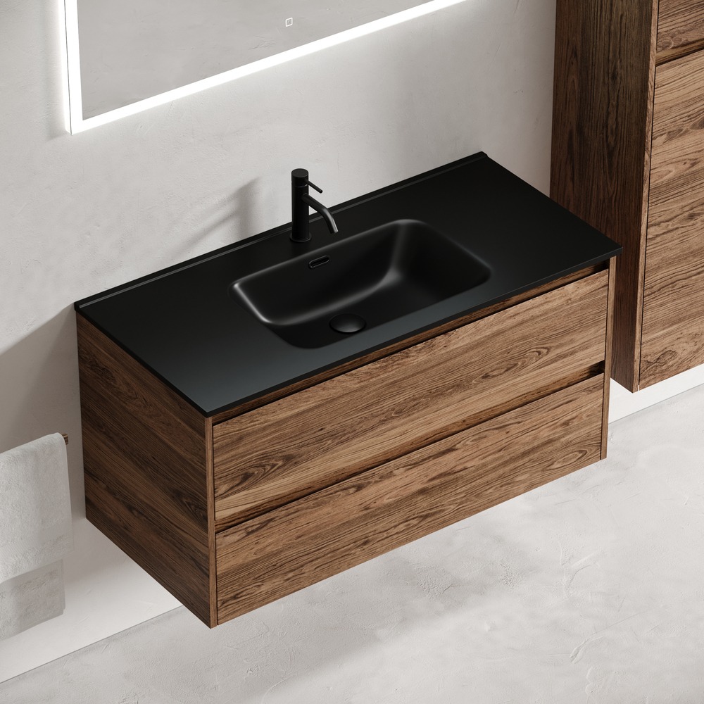 Тумба подвесная Sancos Libra 100 см LB100ECH c доводчиком и раковиной-столешницей Element CN7003MB, цвет дуб чарльстон.