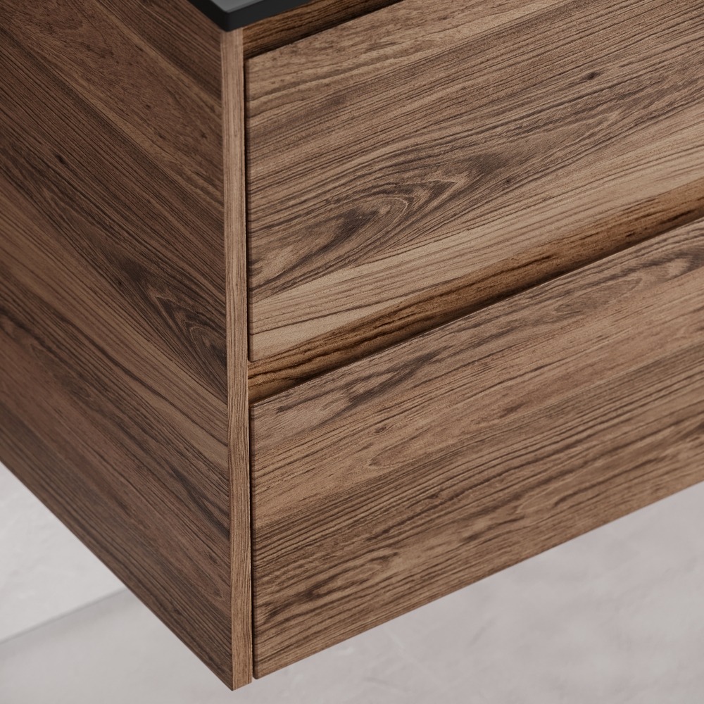 - Тумба подвесная Libra c двумя ящиками оснащенными доводчиками скрытого монтажа с системой плавного закрывания и с ручкой по всей длине ящика. Каркас и фасад тумбы выполнен из ЛДСП в цвете «дуб чарльстон». Покрытие - ламинат.
