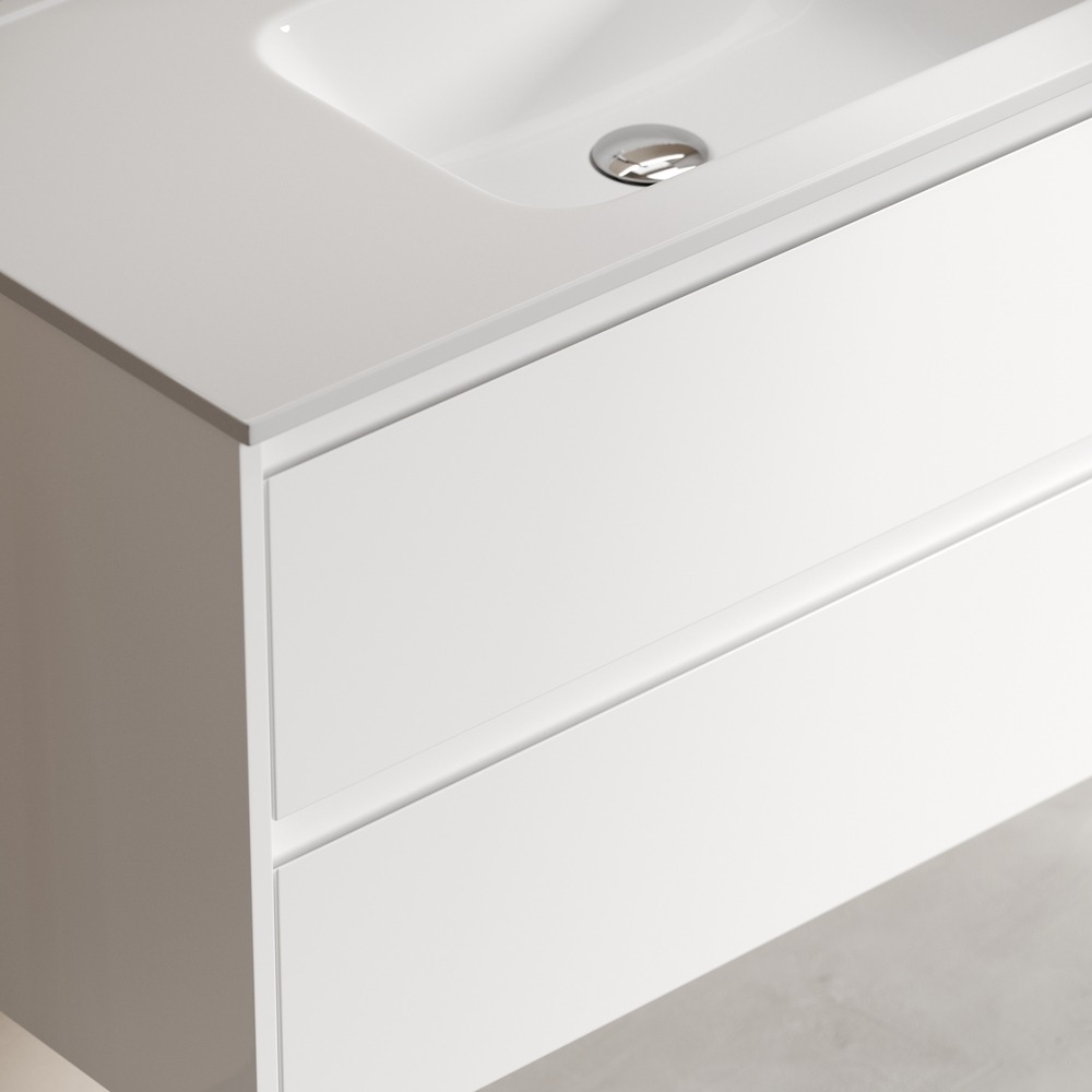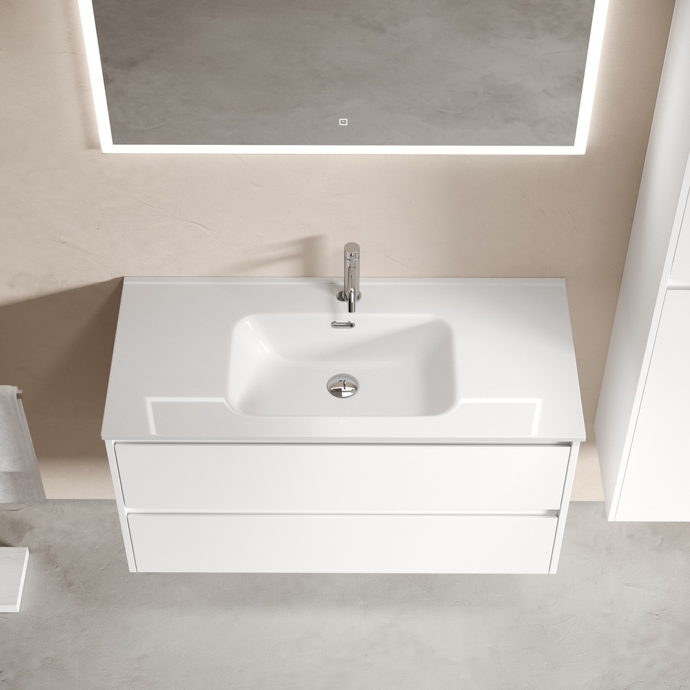 Тумба подвесная Sancos Libra 100 см LB100W c доводчиком и раковиной-столешницей Element CN7003, цвет белый глянец.