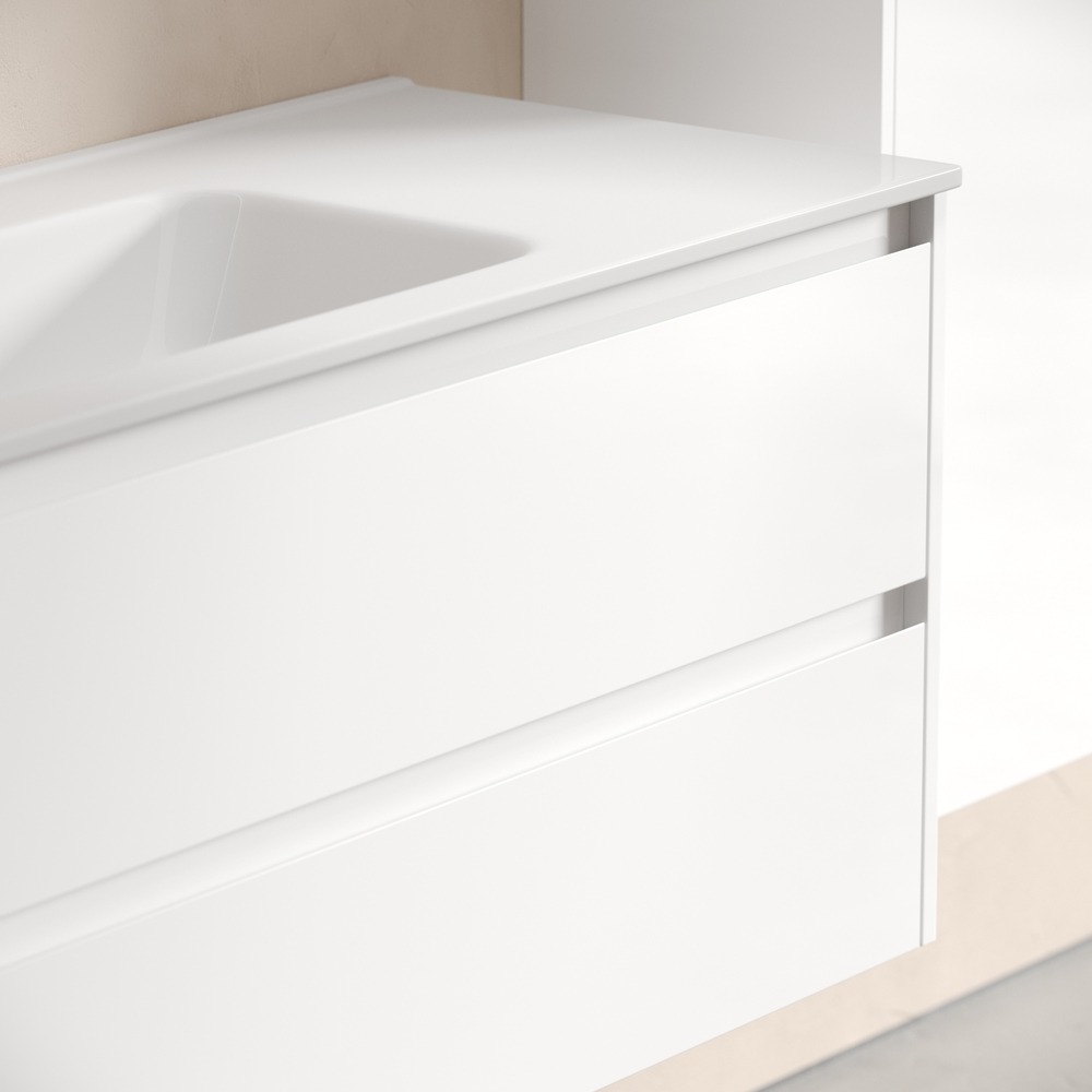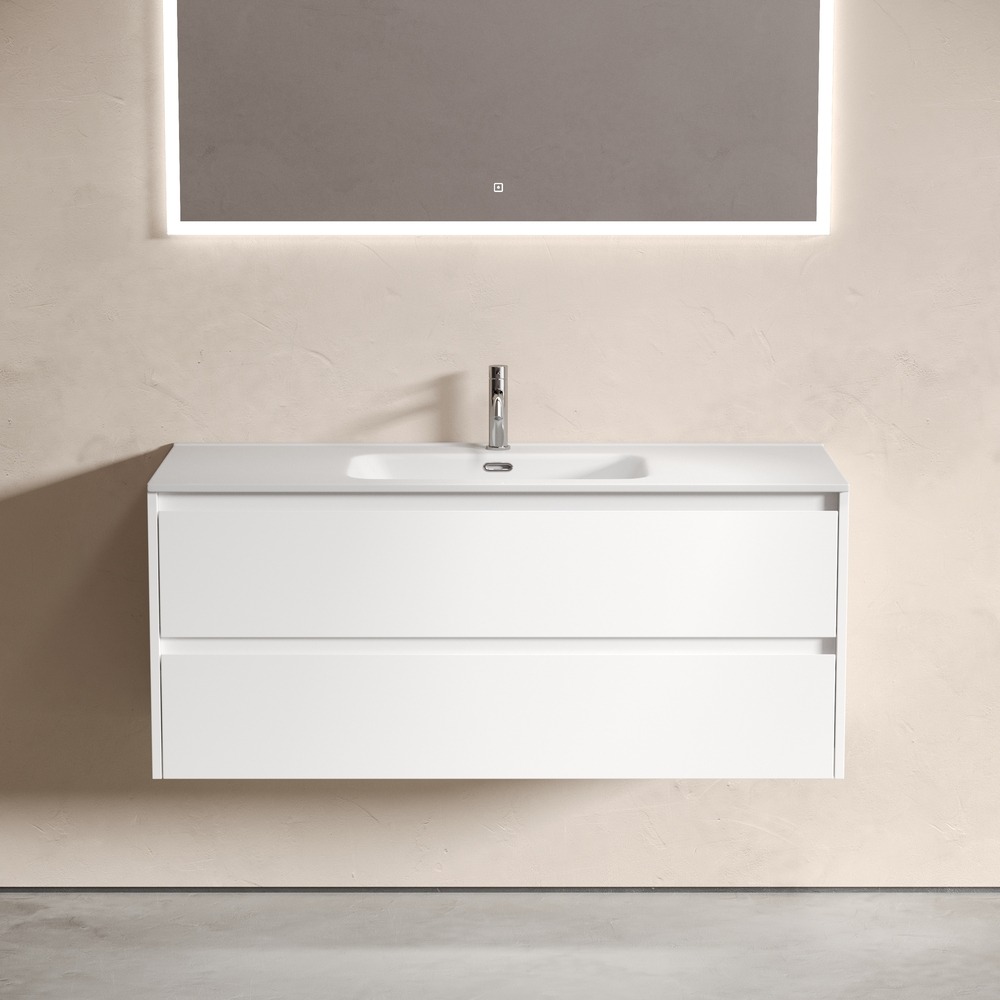 Тумба подвесная Sancos Libra 120 см LB120-1W c доводчиком и раковиной-столешницей Element CN7006, цвет белый глянец.