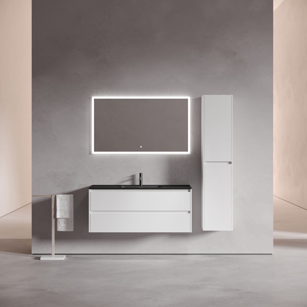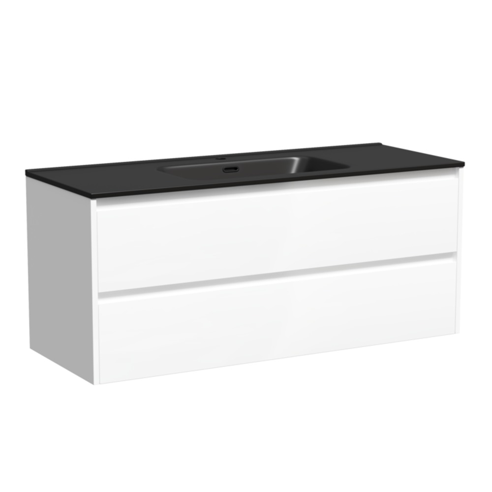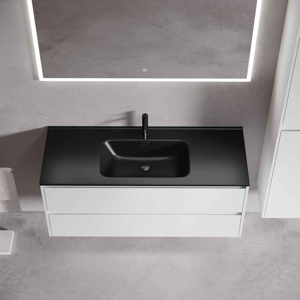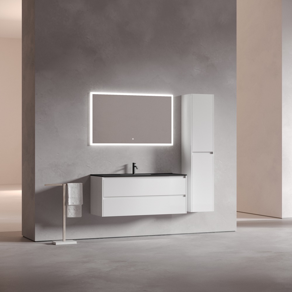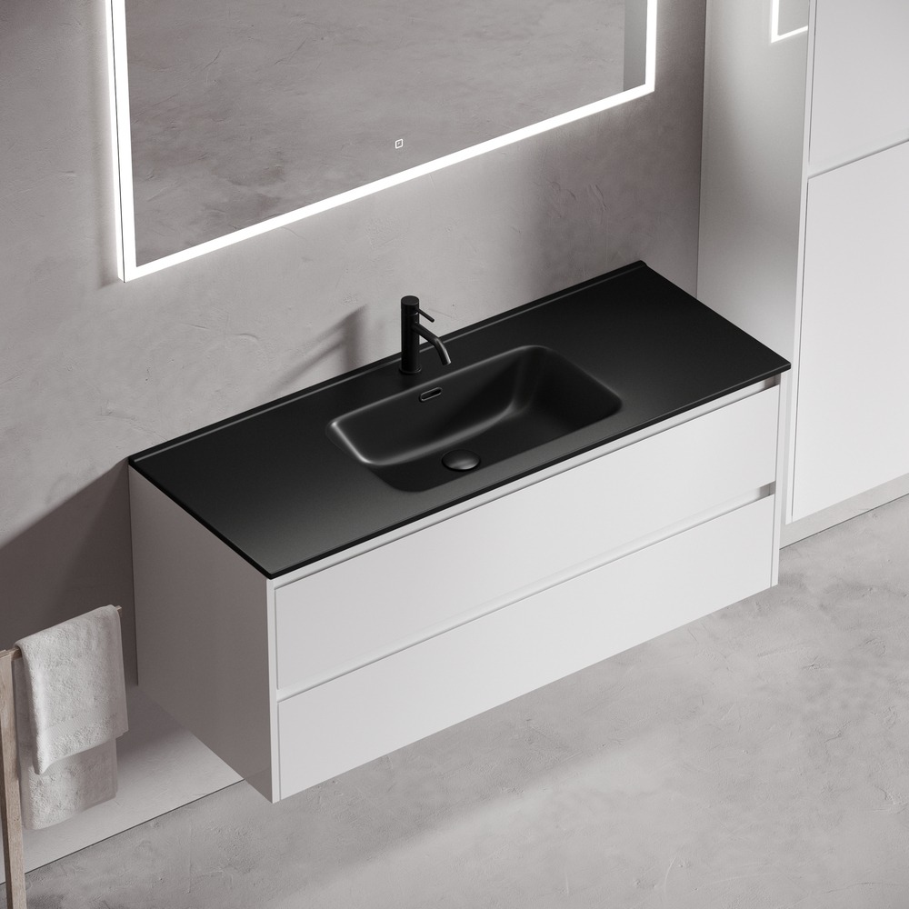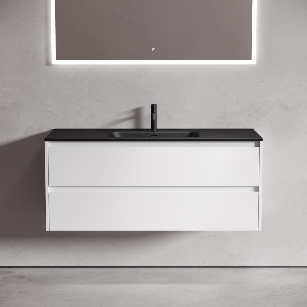 Тумба подвесная Sancos Libra 120 см LB120-1W c доводчиком и раковиной-столешницей Element CN7006MB, цвет белый глянец.