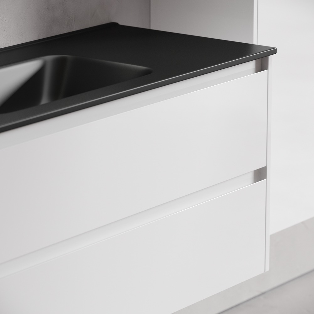 - Тумба подвесная Libra c двумя ящиками оснащенными доводчиками скрытого монтажа с системой плавного закрывания и с ручкой по всей длине ящика. Каркас и фасад тумбы выполнен из МДФ в цвете «белый глянец».