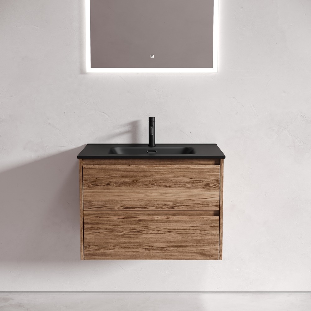 Тумба подвесная Sancos Libra 70 см LB70ECH c доводчиком и раковиной-столешницей Element CN7007MB, цвет дуб чарльстон.