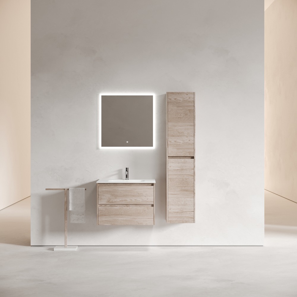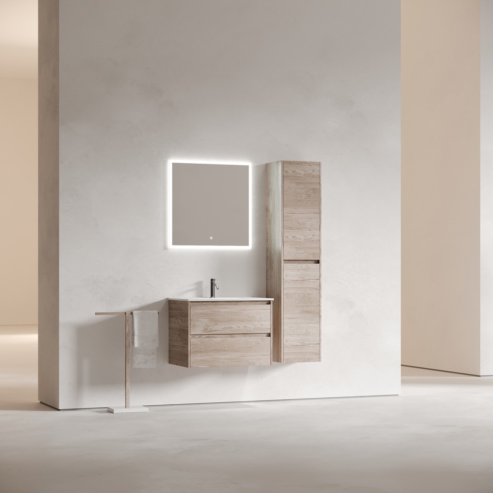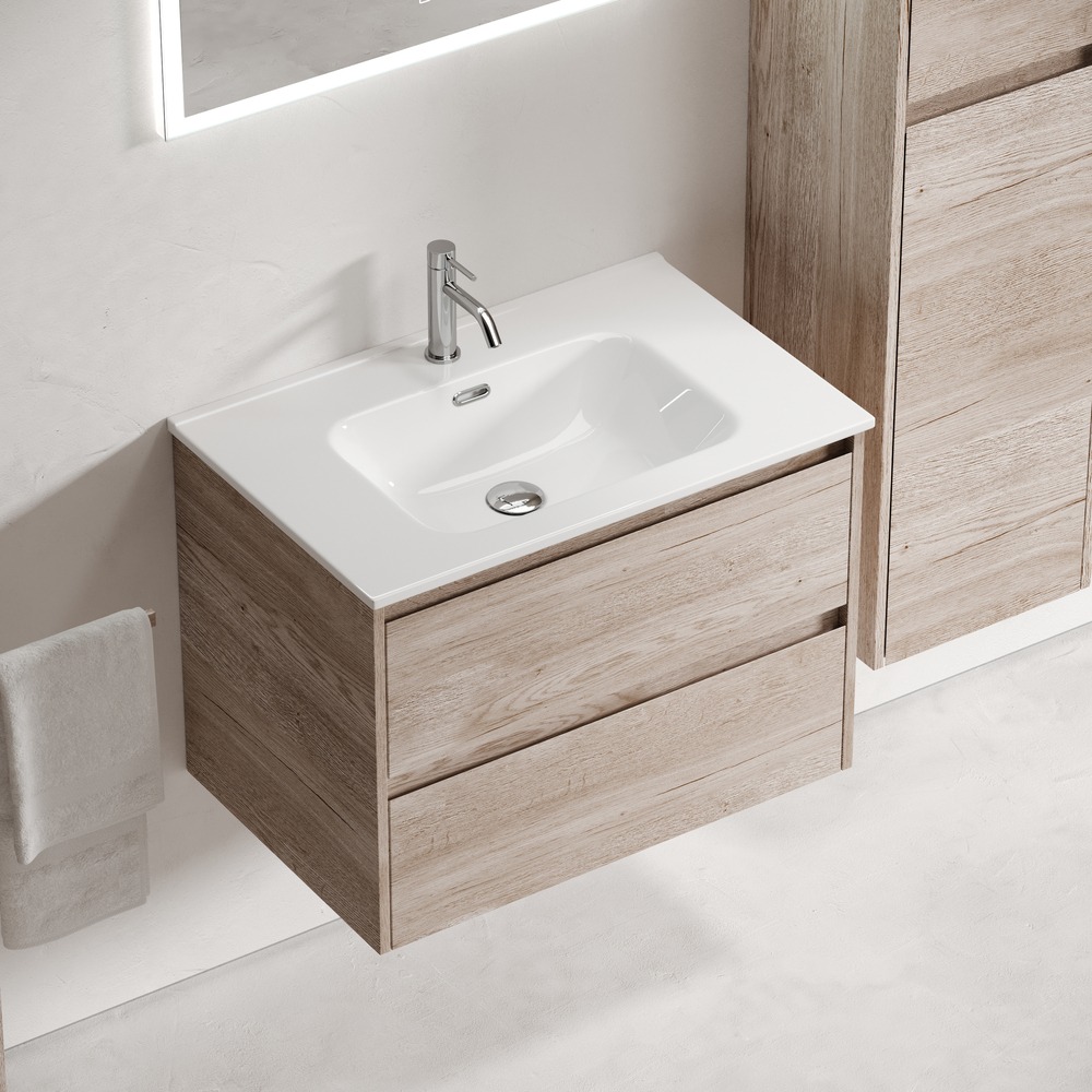 Тумба подвесная с раковиной-столешницей Sancos Libra 70 см LB70EG, дуб галифакс натуральный (раковина Element CN7007)