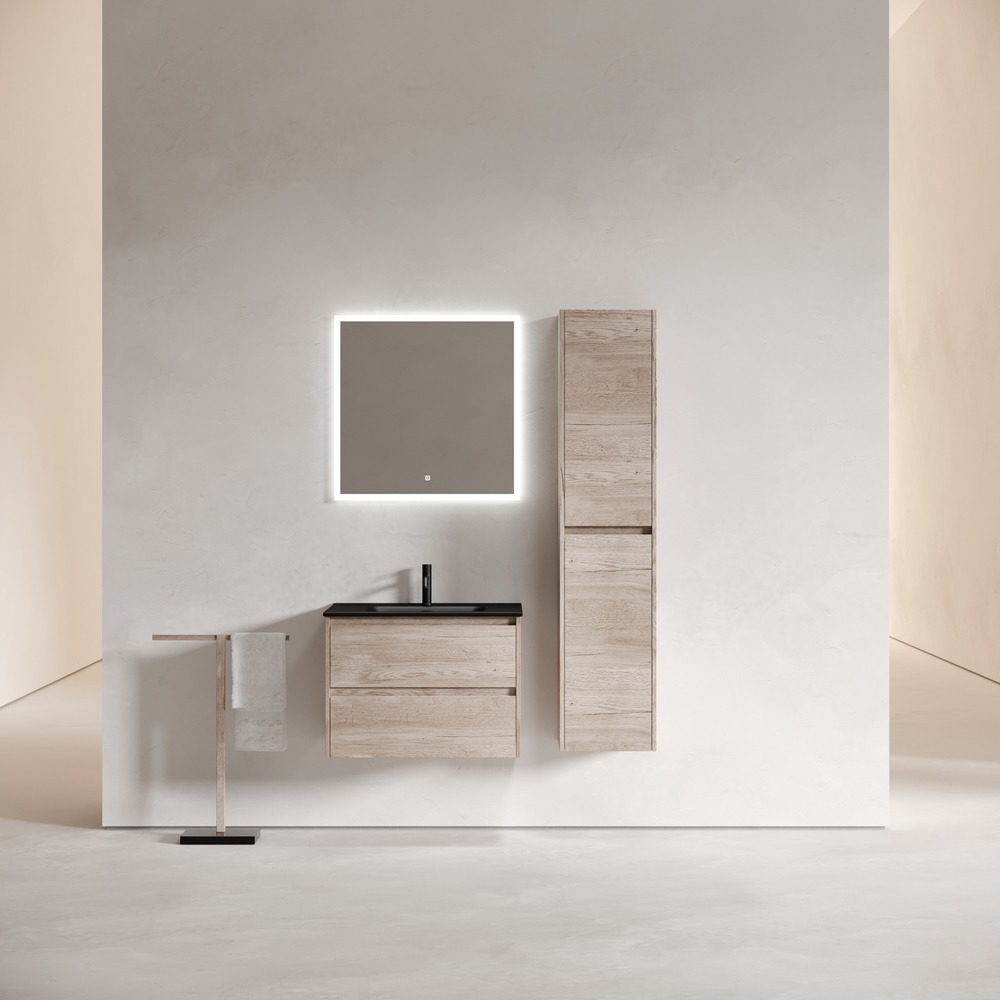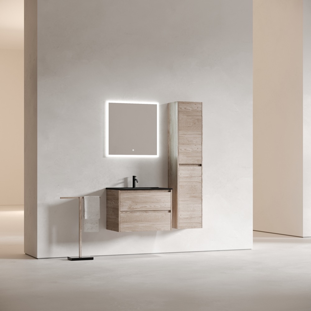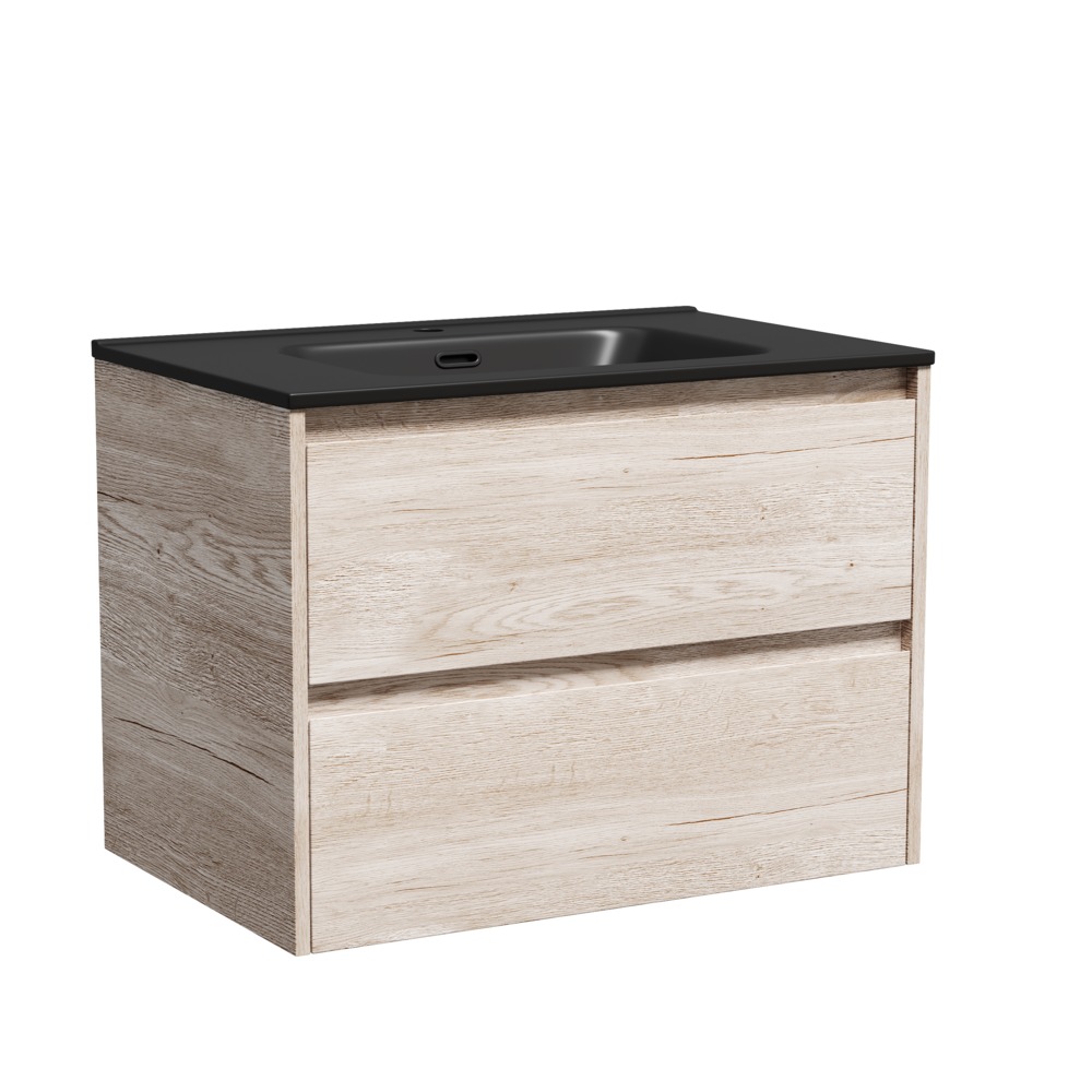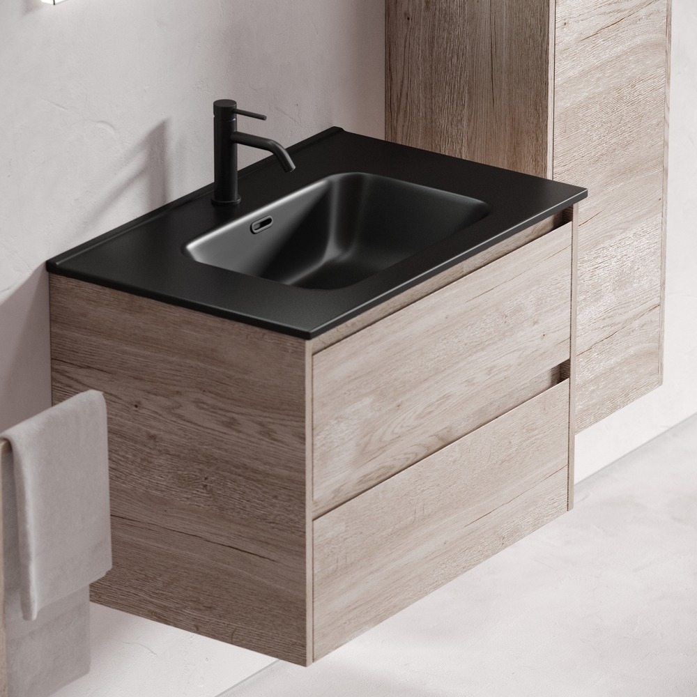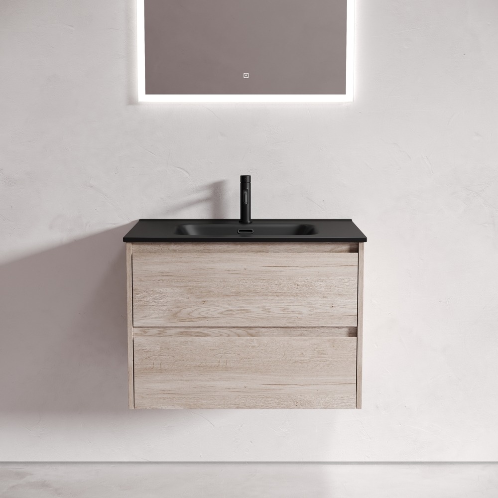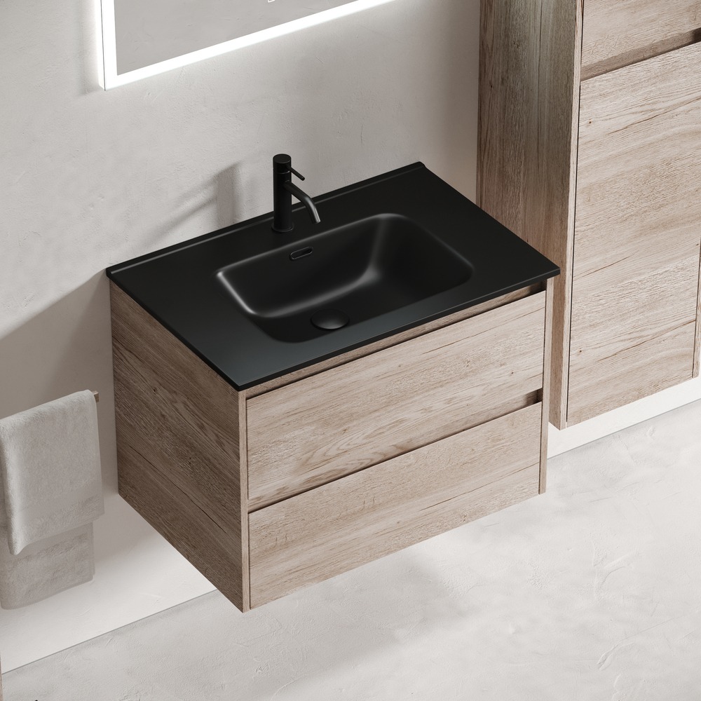 Тумба подвесная Sancos Libra 70 см LB70EG c доводчиком и раковиной-столешницей Element CN7007MB, цвет дуб галифакс натуральный.