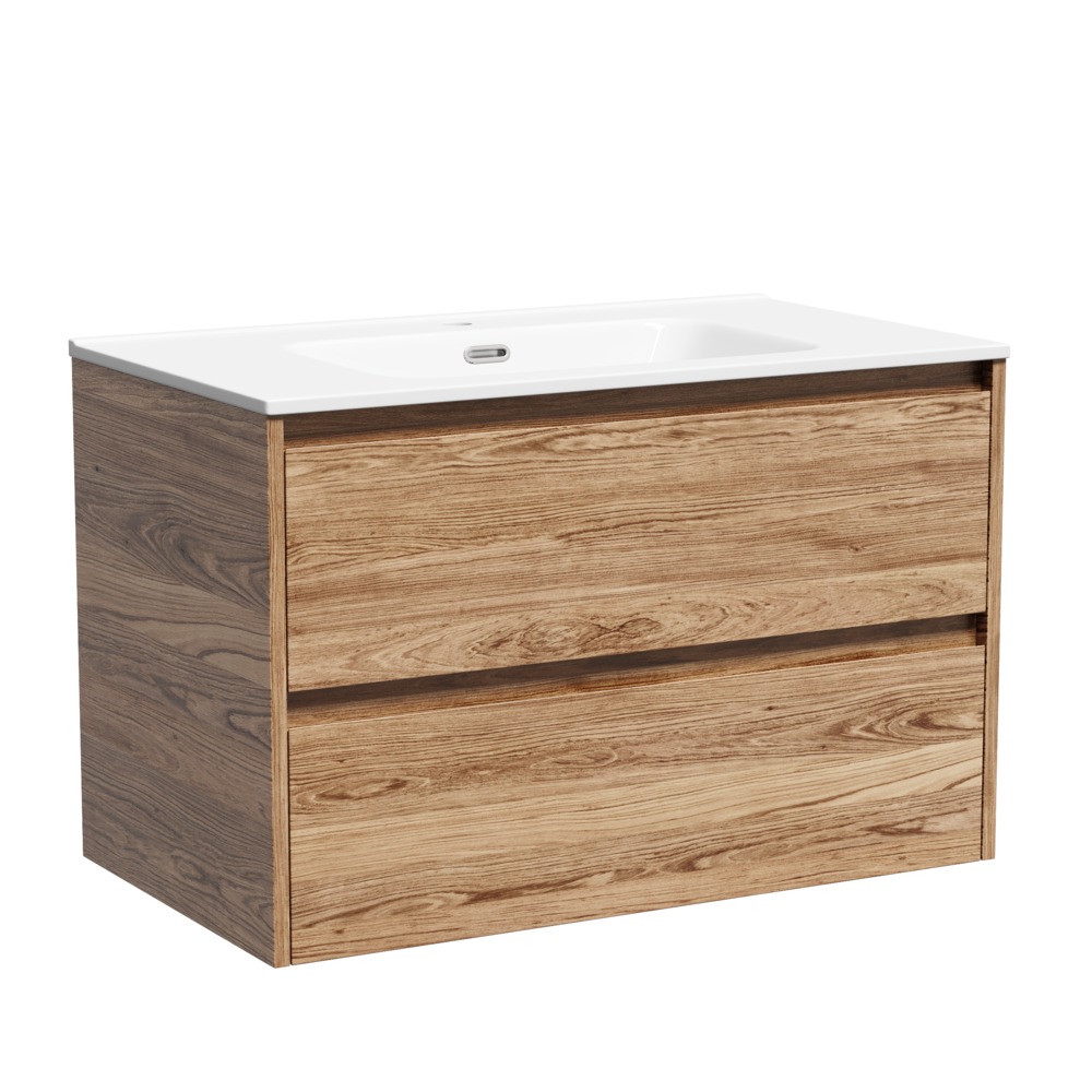 Тумба подвесная с раковиной-столешницей Sancos Libra 80 см LB80ECH, дуб чарльстон (раковина Element CN7005)