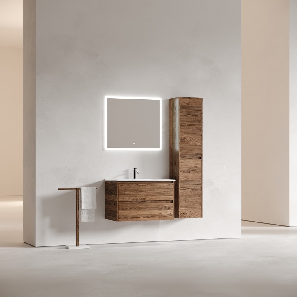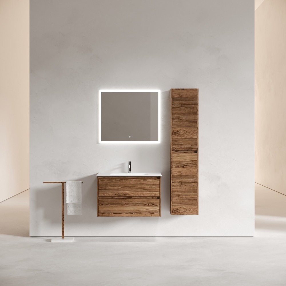 Тумба подвесная Sancos Libra 80 см LB80ECH c доводчиком и раковиной-столешницей Element CN7005, цвет дуб чарльстон.