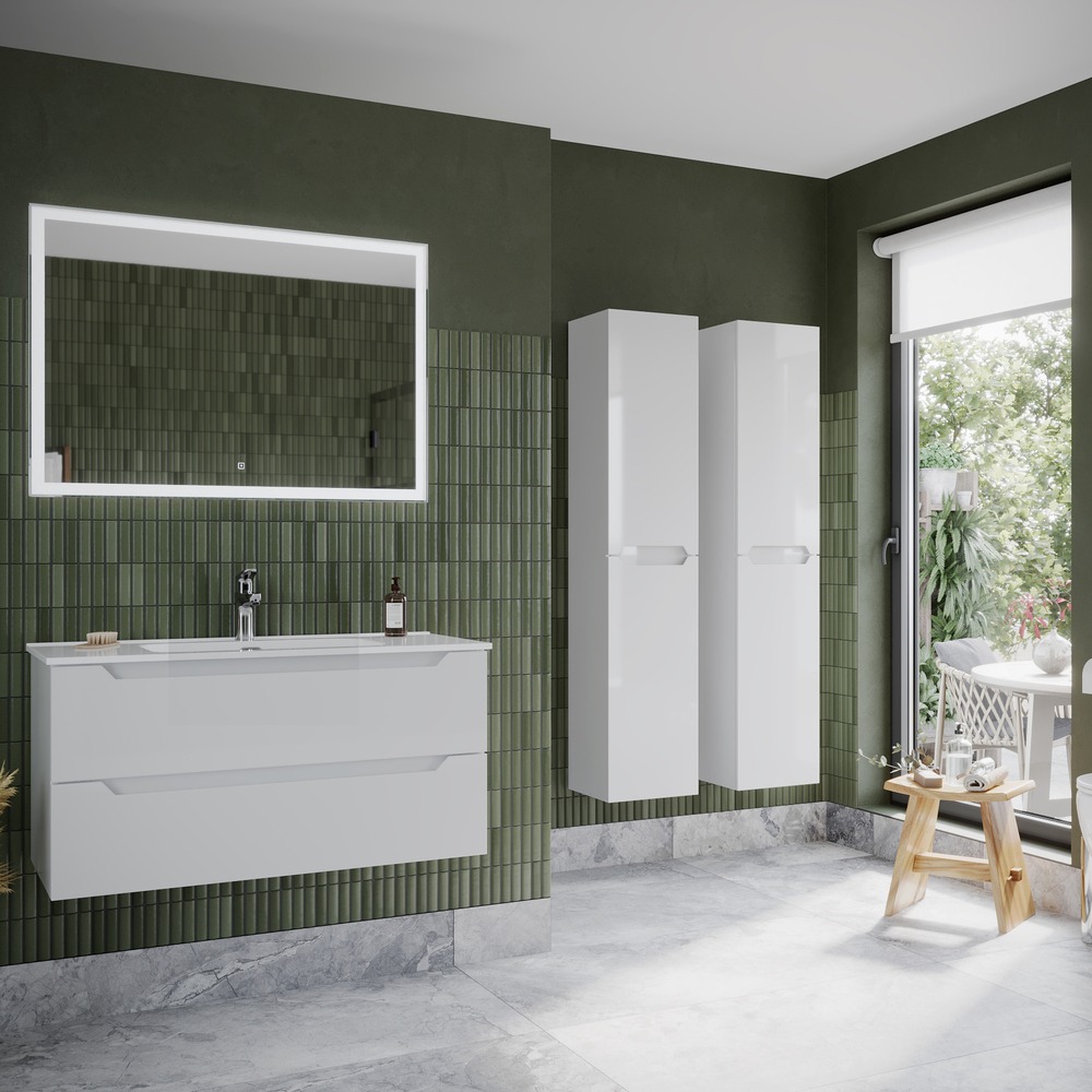 Тумба подвесная Sancos Norma 2.0 100 см NR2.0100W c доводчиком и раковиной-столешницей Element CN7003, цвет белый глянец.