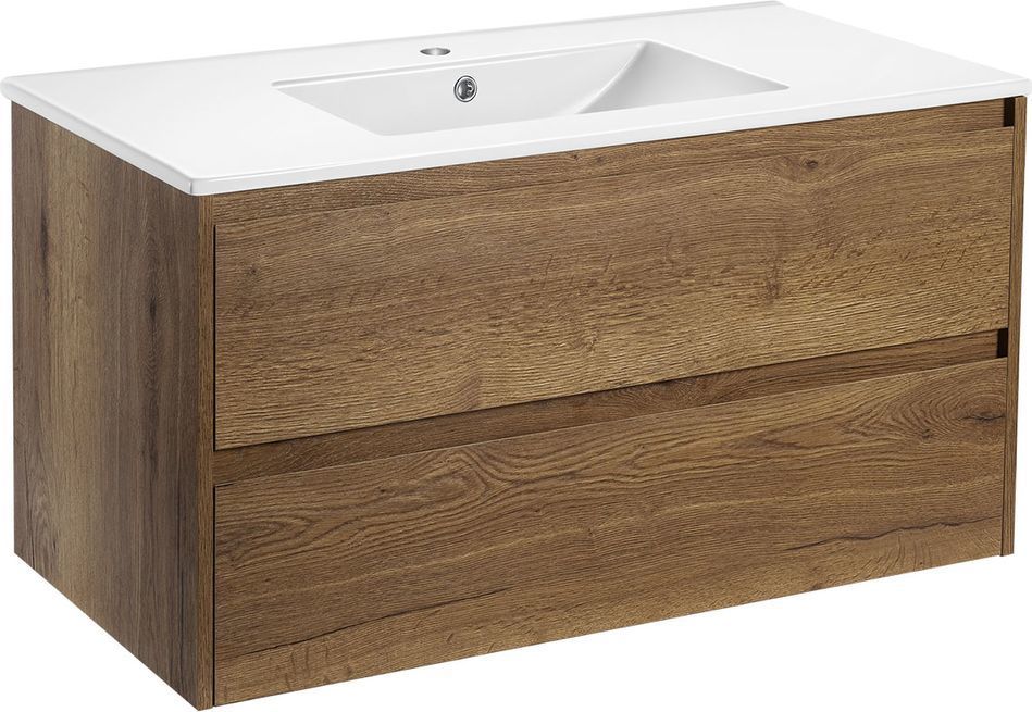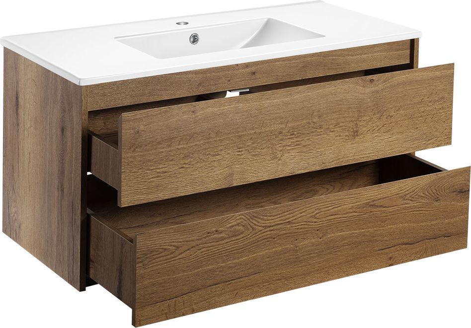 Тумба подвесная Vincea Gio 100 см с раковиной VBS-13100, система хранения: 2 выкатных ящика с доводчиками, цвет - дуб табак.