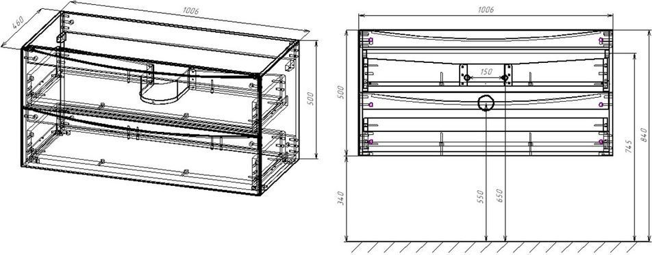 Тумба подвесная Vincea Mia 100 см с раковиной VBS-13100, система хранения: 2 выкатных ящика с доводчиками, цвет - белый глянец.