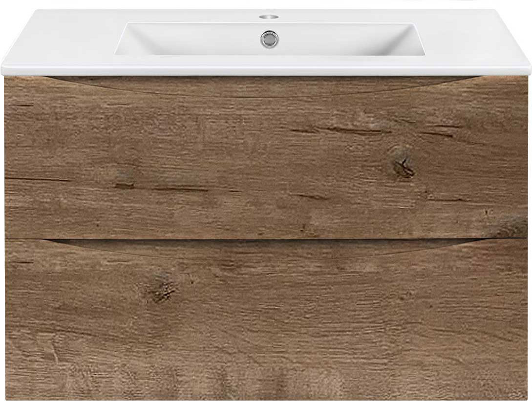 Тумба подвесная Vincea Mia Slim 80 см с раковиной VBS-13980S1, система хранения: 2 выкатных ящика с доводчиками, цвет - дуб винтаж.
