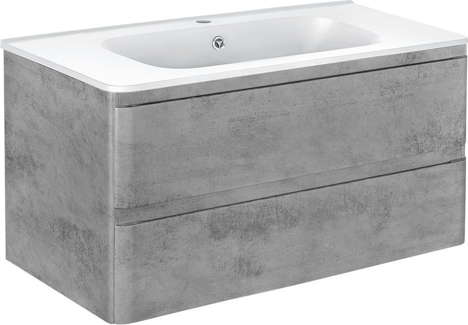 Тумба подвесная Vincea Vico 100 см с раковиной из искусственного камня VCB-2VP100W, система хранения: 2 выкатных ящика с доводчиками, цвет - бетон.