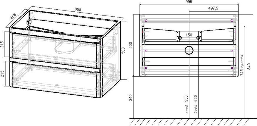 Характеристики тумба с раковиной,тумба с раковиной-столешницей Vincea (VMC-2V100BT+VCB-2VP100W)