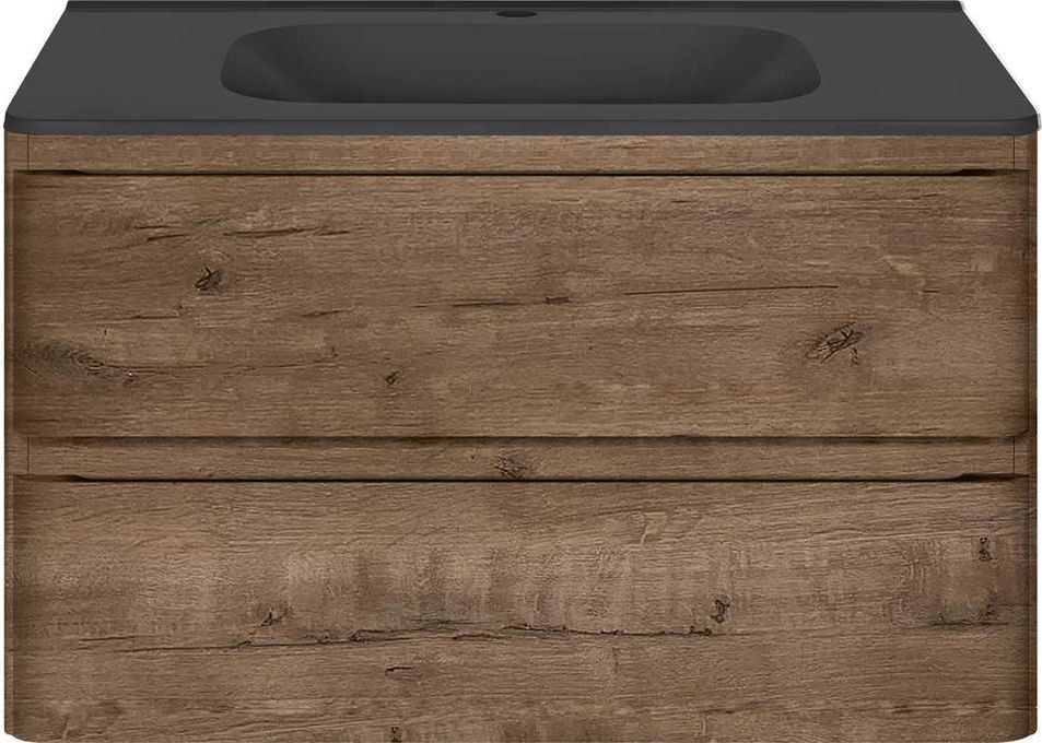 Тумба подвесная с раковиной Vincea Vico 80 см VMC-2V800VO (раковина черная VCB-2VP800B), дуб винтаж