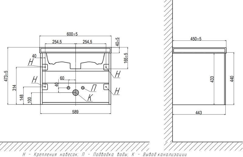 - Размер тумбы с раковиной: 600±5х450±5х473±5 мм (раковина Como 60)
