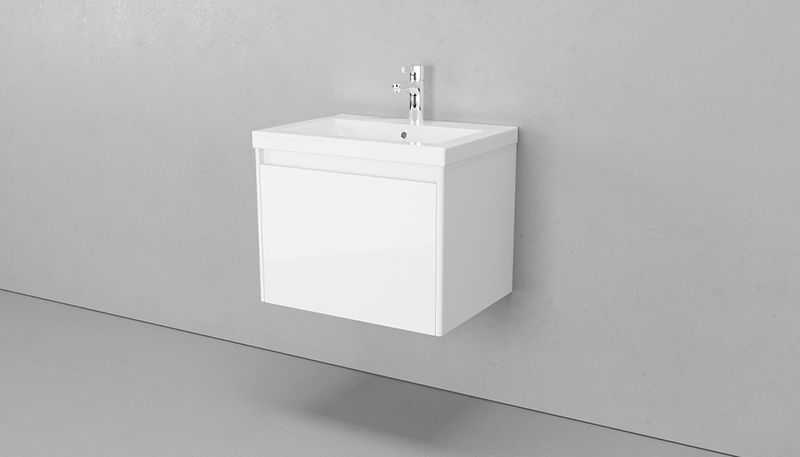 Тумба подвесная Velvex Klaufs 60 с раковиной Сомо 60. Цвет белый глянец.