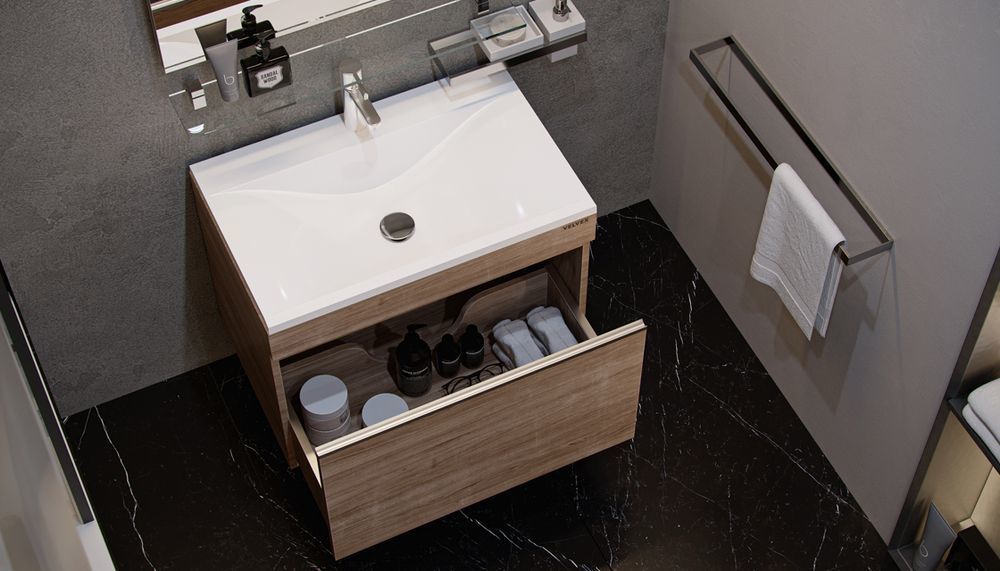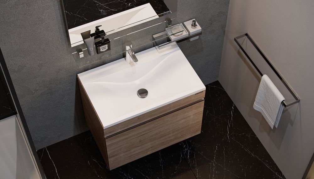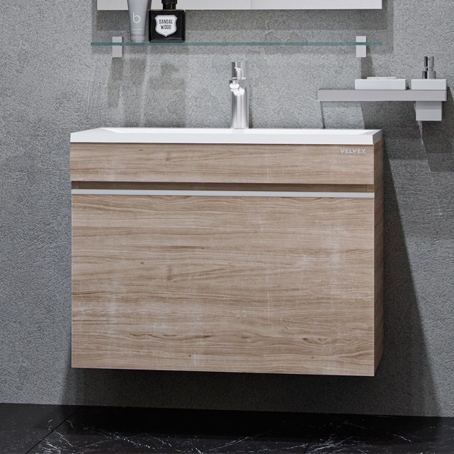 Тумба подвесная с раковиной Velvex Pulsus 70 см tpPUL.70-25, дуб сонома