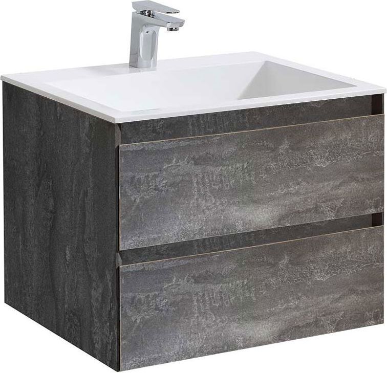 Тумба подвесная Vincea Luka 60 см с раковиной из искусственного камня VCB-13600W, система хранения: 2 выкатных ящика с доводчиками, цвет - серый камень.