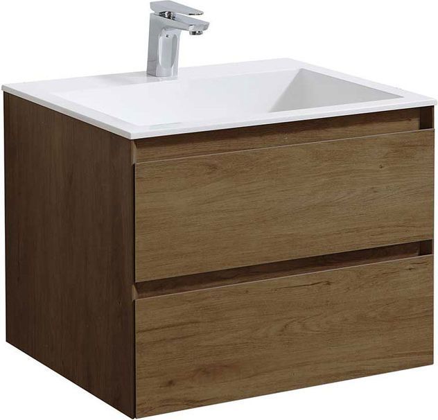 Тумба подвесная Vincea Luka 60 см с раковиной из искусственного камня VCB-13600W, система хранения: 2 выкатных ящика с доводчиками, цвет - дуб табак.