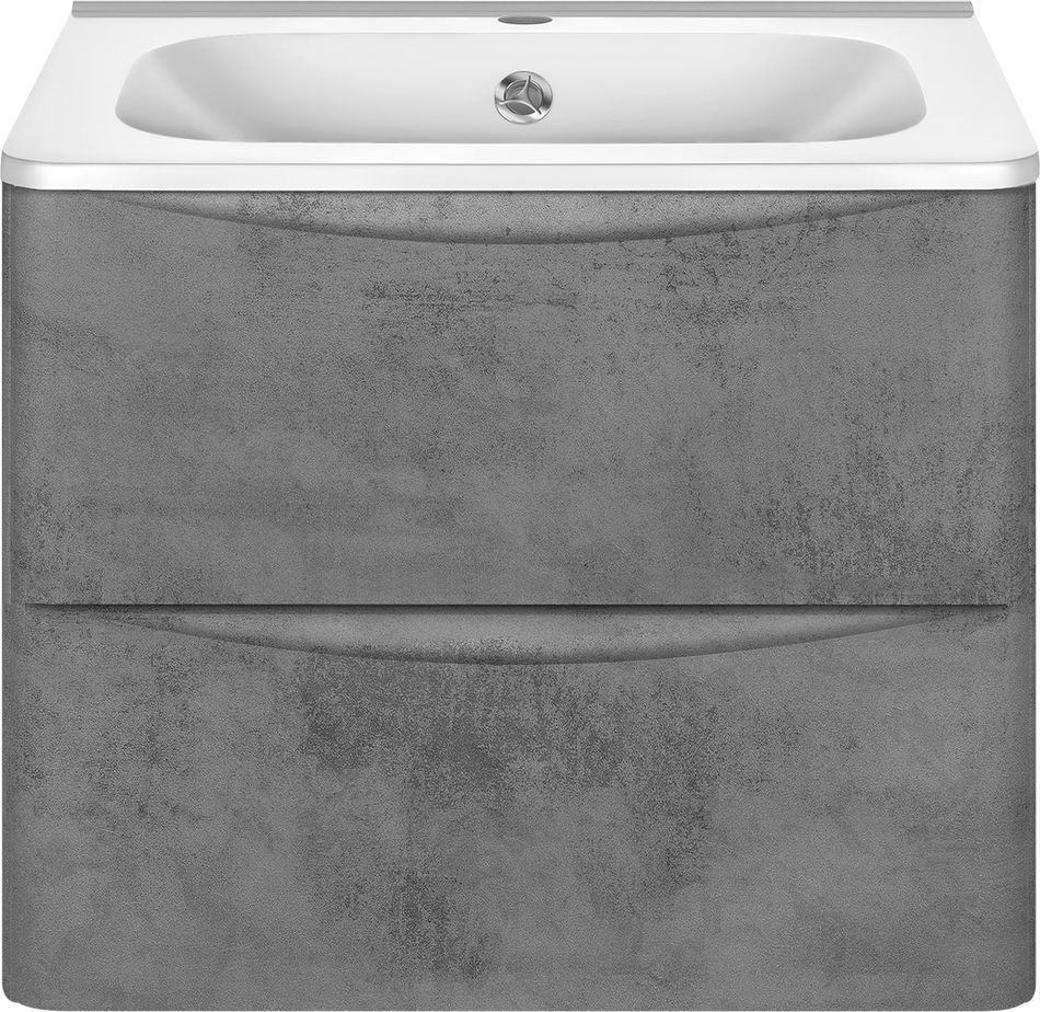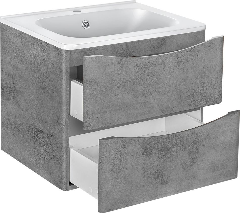 Тумба подвесная Vincea Paola 60 см с раковиной из искусственного камня VCB-2VP600W, система хранения: 2 выкатных ящика с доводчиками, цвет - бетон.
