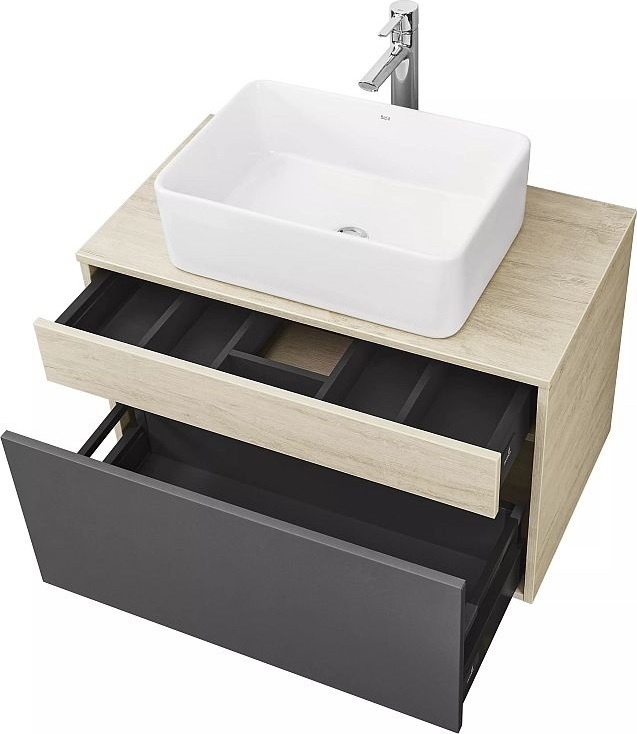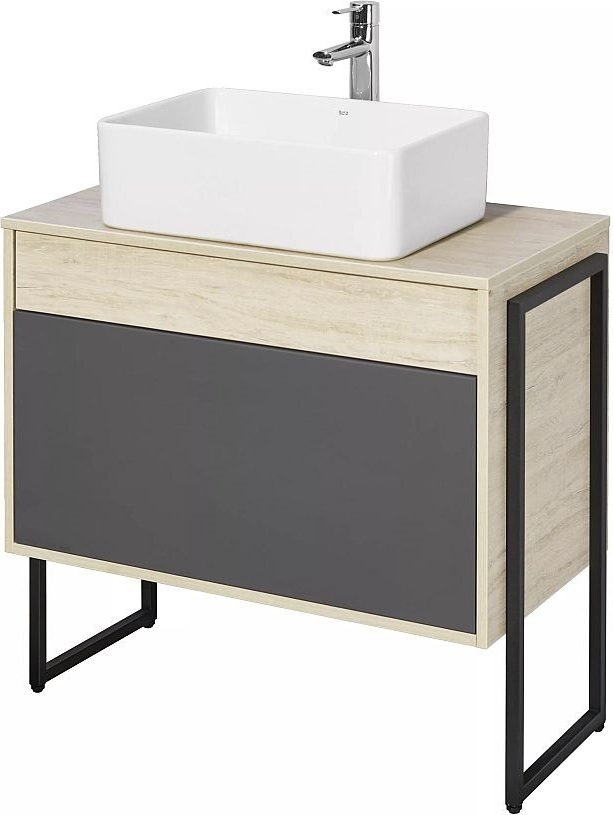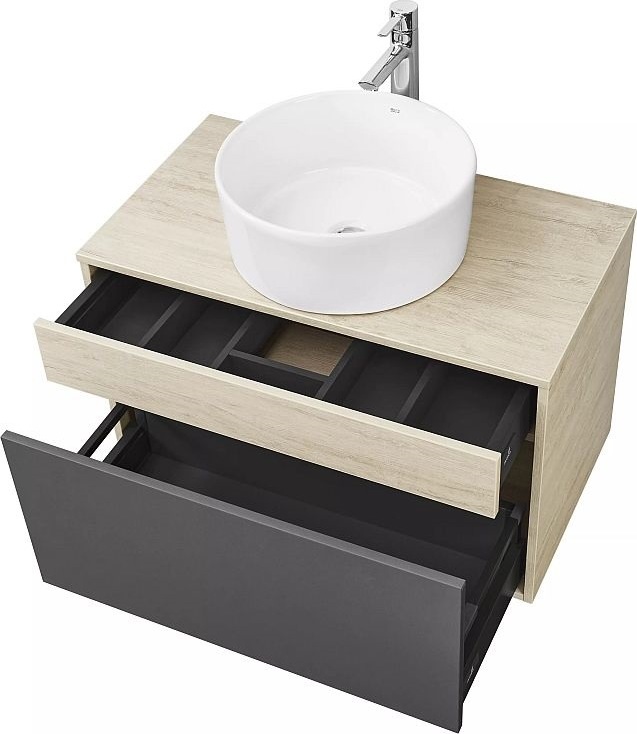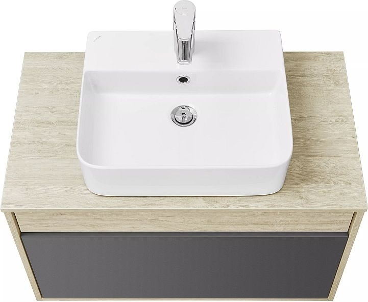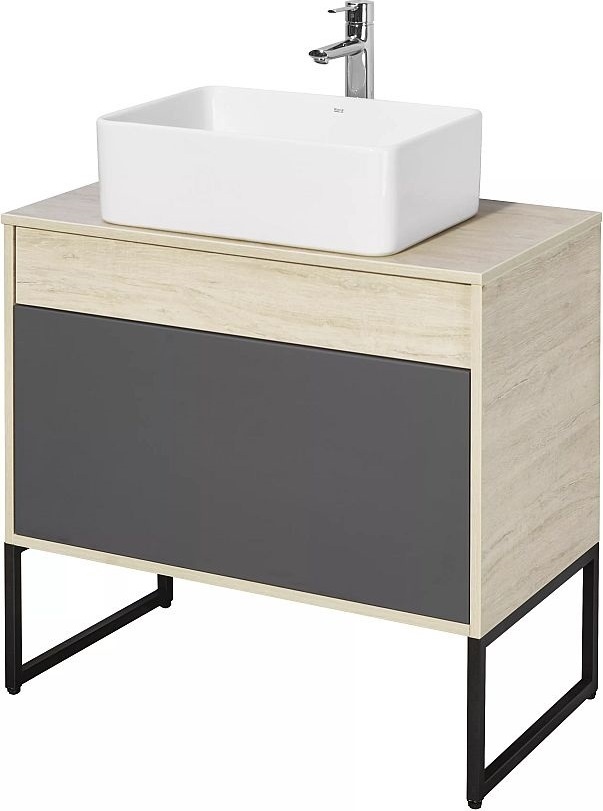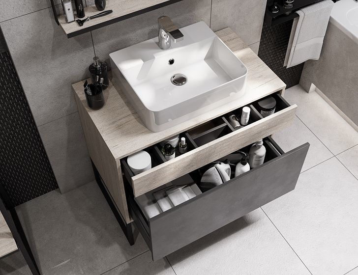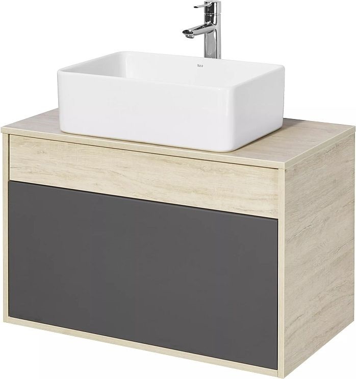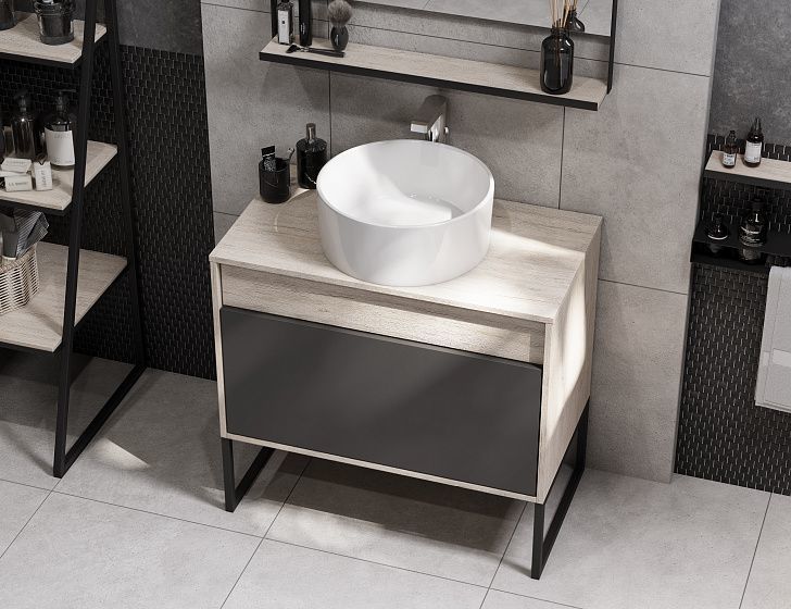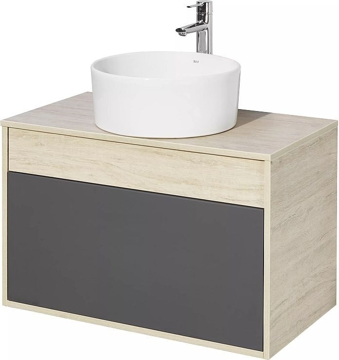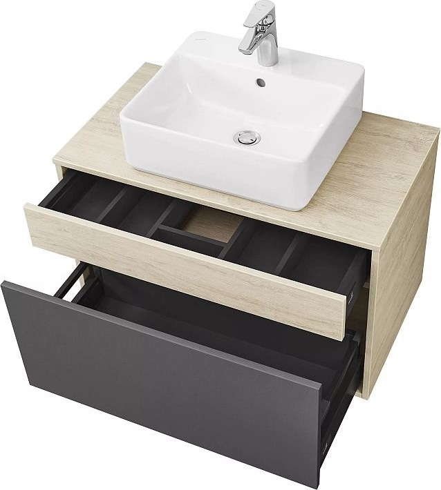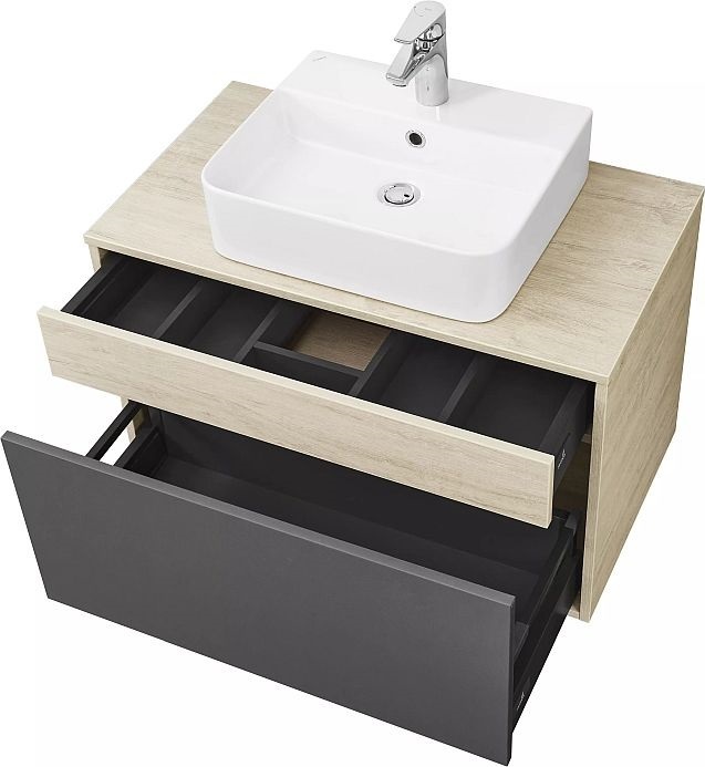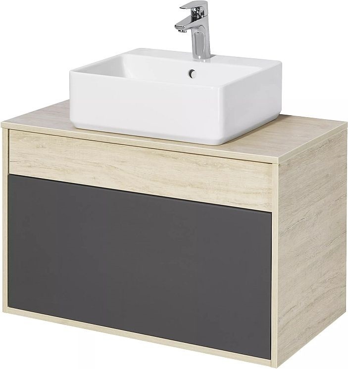Тумба подвесная со столешницей Акватон Лофт Урбан 80 см 1A247601LQX60, цвет дуб орегон/серый графит. Раковина приобретается отдельно.