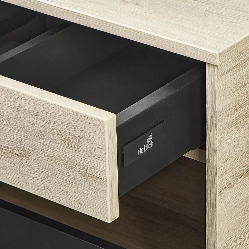 - Функция полного выдвижения ящиков и система открывания push-to-open делают использование тумбы особенно комфортным