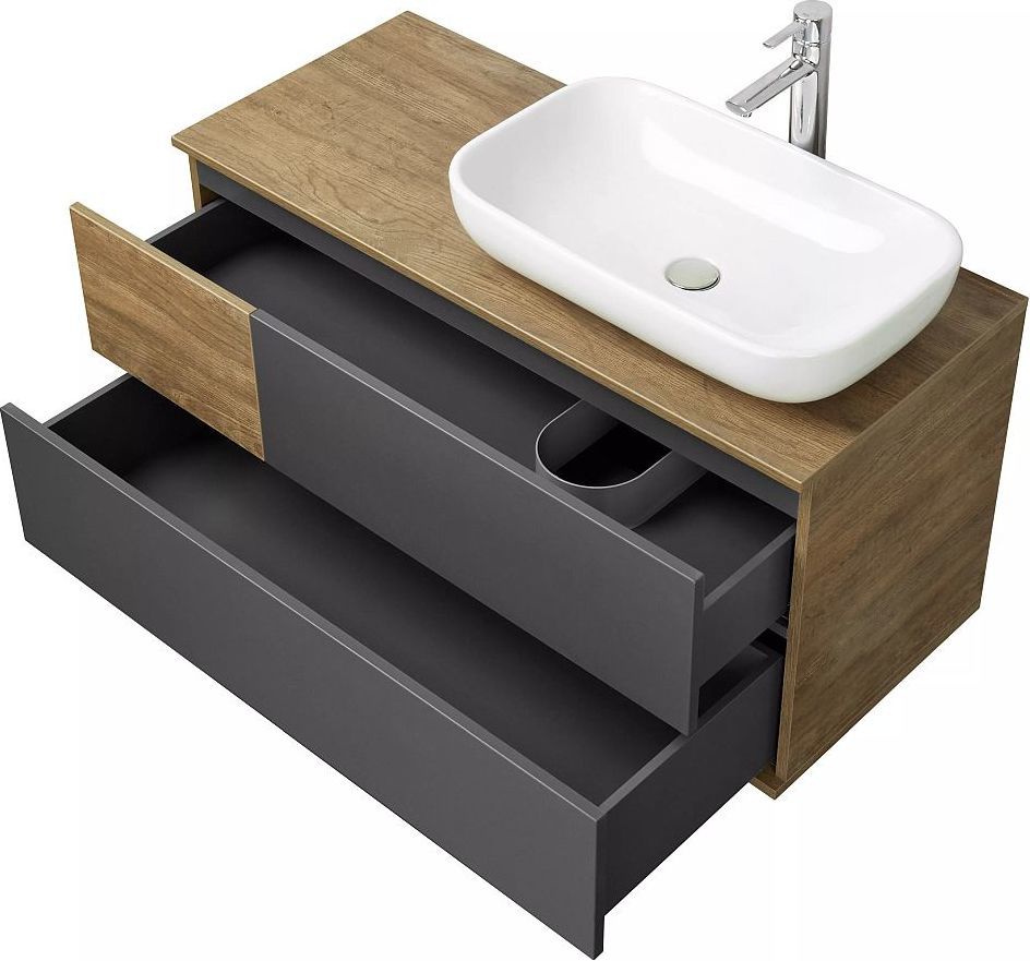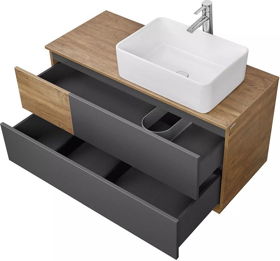 Тумба подвесная со столешницей Акватон Терра 105 см 1A246901TEKA0, цвет - дуб кантри/антрацит. Раковина приобретается отдельно.